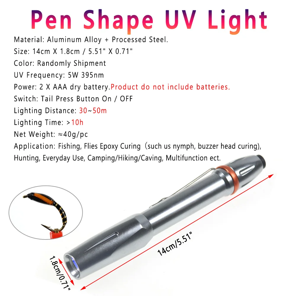 Aplicación: pesca, secado epoxi de moscas (como ninfas, curado de cabeza de zumbador), caza, uso diario, camping/senderismo/espeleología, multifunción, etc.