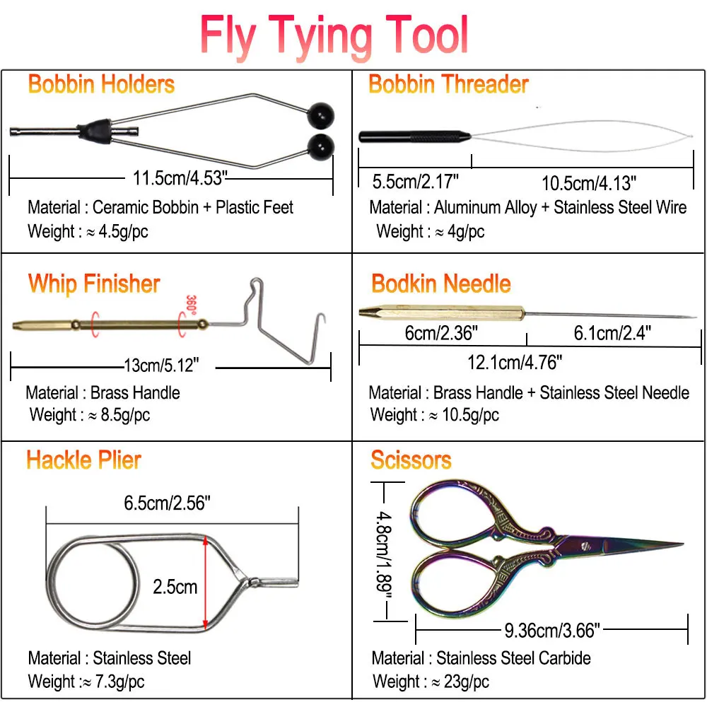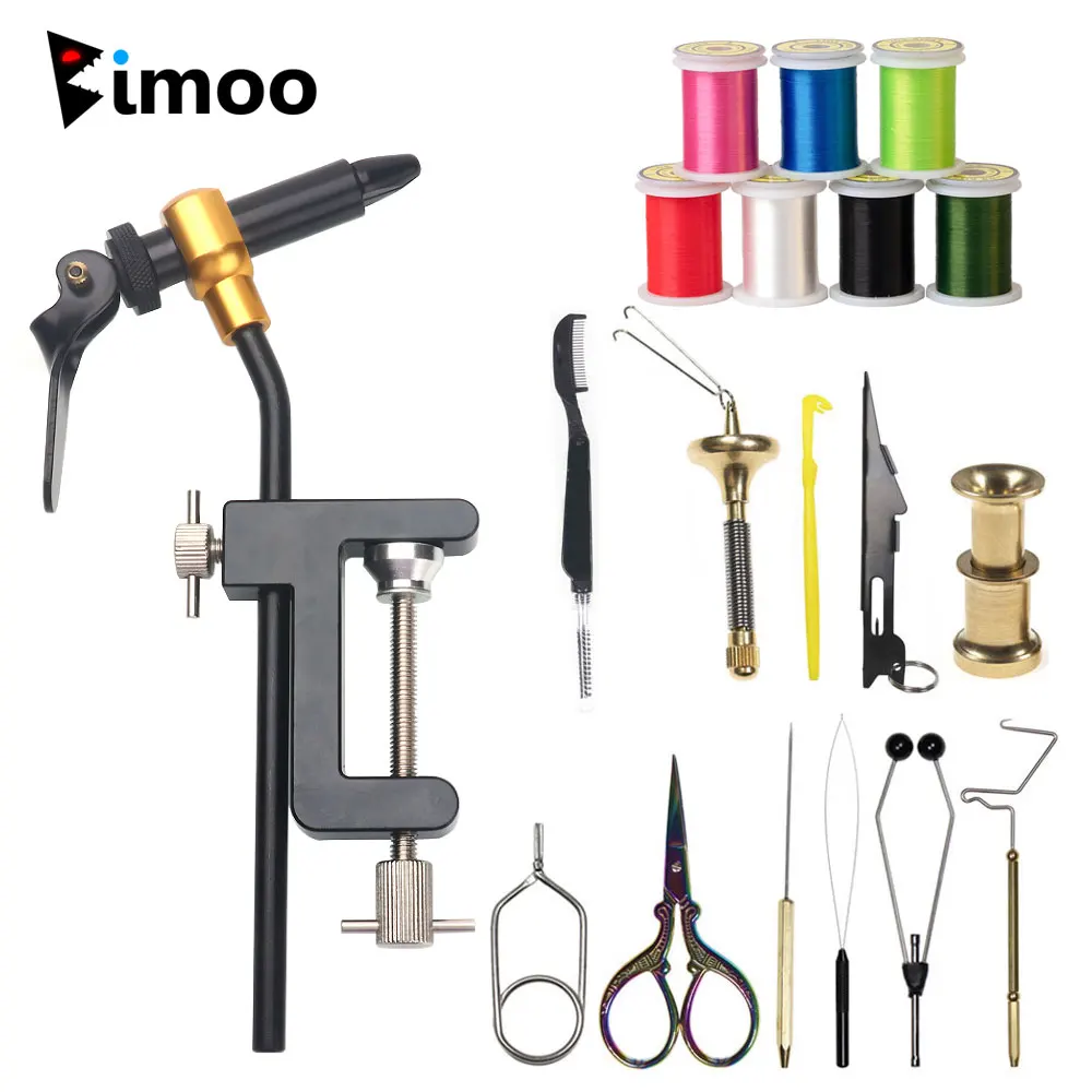 Abrazadera en C de acero endurecido Bimoo, tornillo de banco para atado de moscas, soporte de bobina, enhebrador de bobina, soporte de origen, tijeras, herramientas para atado de moscas, hilo para atado de moscas 50D GSP