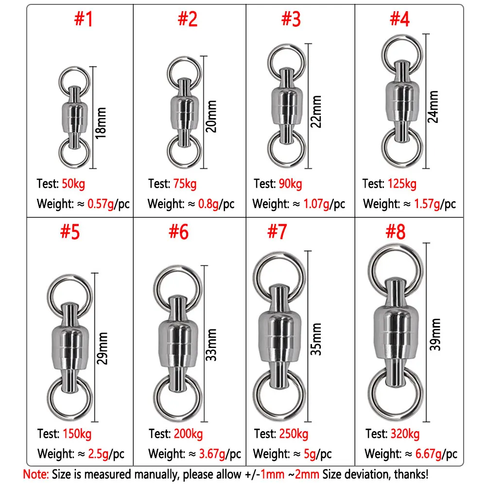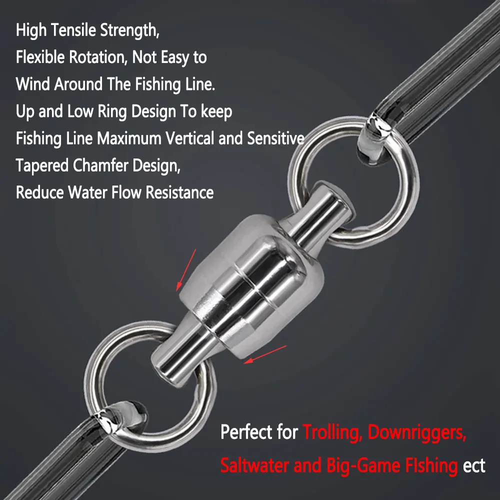 Bimoo-Rodamiento de bolas de acero inoxidable, anillo sólido giratorio, Conector de pesca, agua dulce, agua salada, cebo curricán