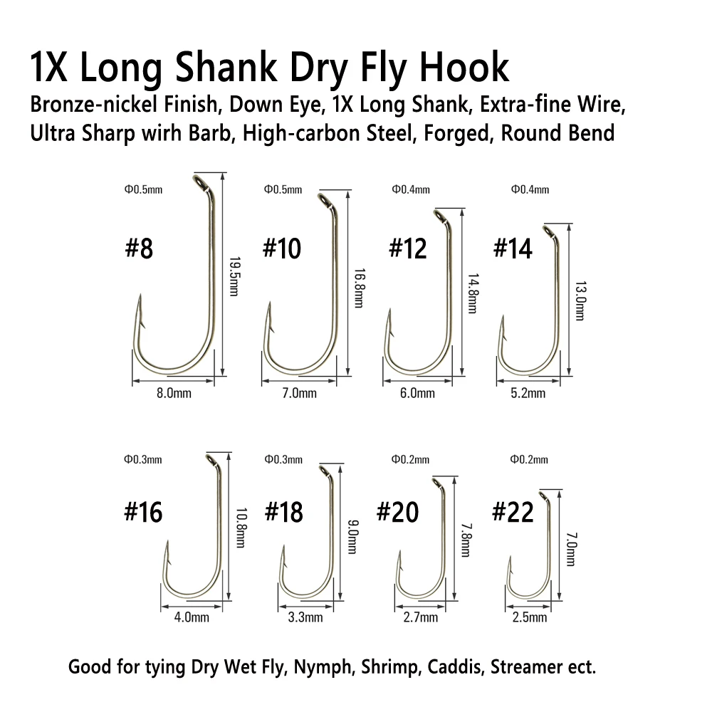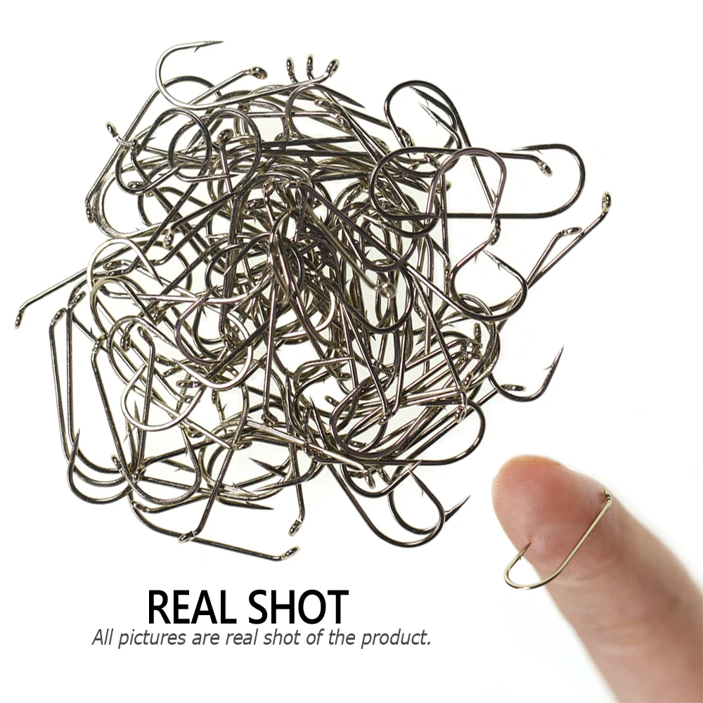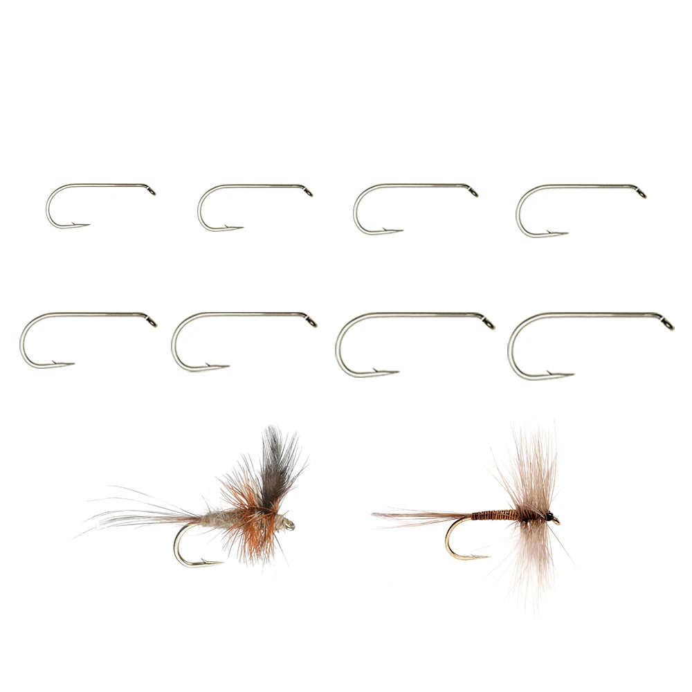 Gancho de atado de moscas Bimoo 500/1000 piezas mosca seca Ninfa camarones Caddis Pupa serpentina de acero al carbono anzuelo estándar para moscas secas al por mayor