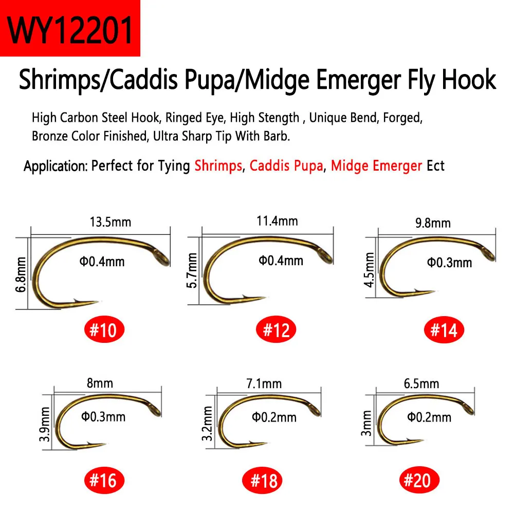 WY12201 Gancho para moscas con púas para camarones/Caddis Pupa/Midge Emerger