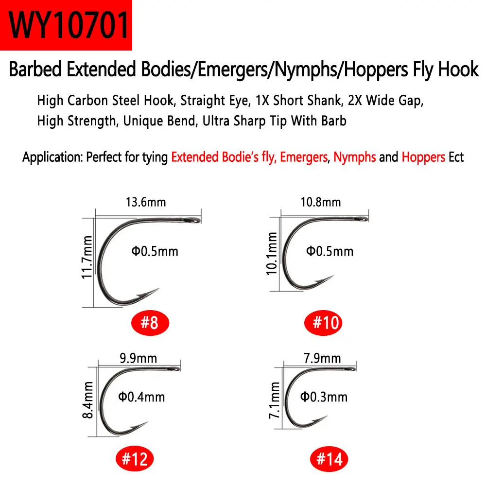 WY10701 Cuerpos extendidos con púas/Hoopers/Emegadores/Sinrfs Gancho para mosca