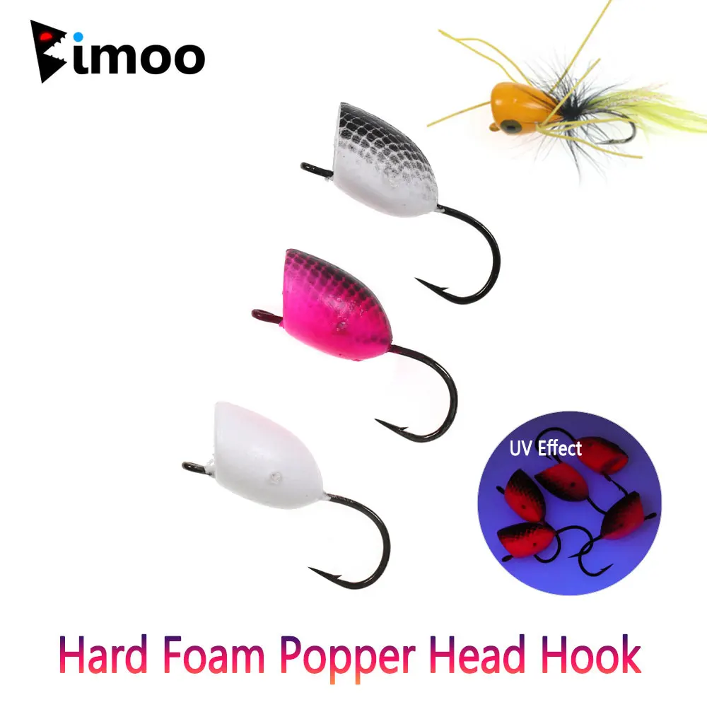Bimoo 30 piezas 0,24g gancho de cabeza de Popper de espuma dura para DIY Popper Bugs Topwater Material de atado de moscas flotantes trucha Señuelos de Pesca cebos