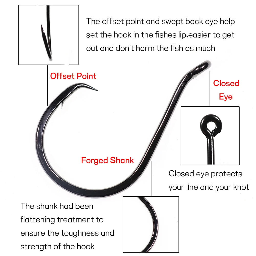 Mayor tasa de captura: Los ganchos circulares pesados están hechos de acero forjado japonés con una punta afilada para garantizar el mejor juego de ganchos.