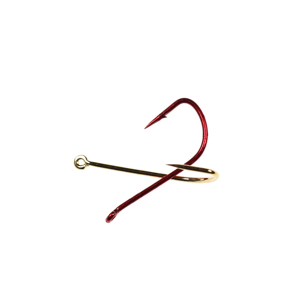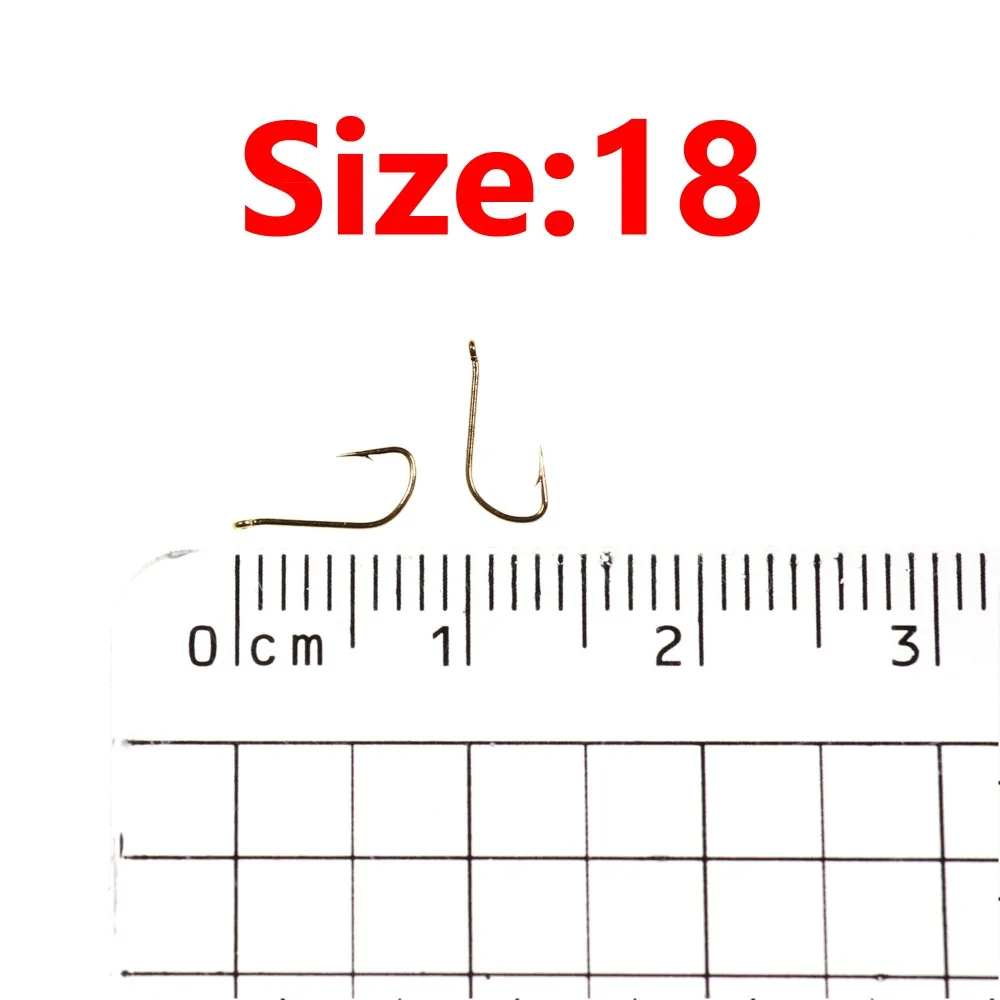 Anzuelo de mosca seca de alambre fino Bimoo, anzuelo de atado de mosca de Color Rojo Dorado, punta afilada, anzuelos de pesca con mosca pequeña para trucha pequeña