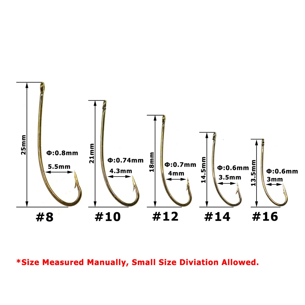 Bimoo-Anzuelo para mosca seca, anzuelo para atar moscas, 3XL, tamaño 3, 10, 12, 14, 16, 500 y