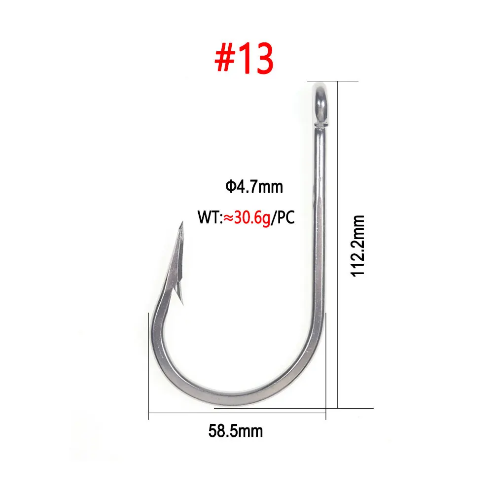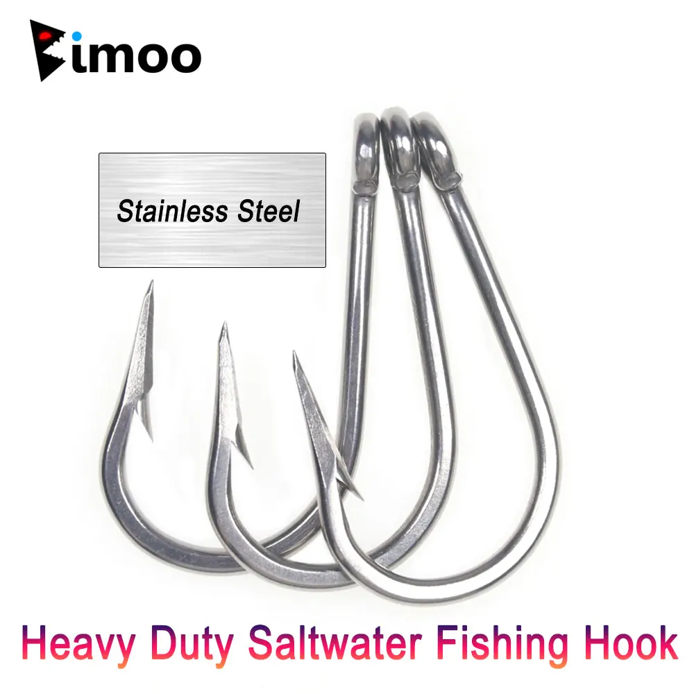 Anzuelo de pesca de agua salada resistente de acero inoxidable Bimoo 5/0 ~ 13/0 para chunking Jigging atún tiburón pesca gran juego pesca