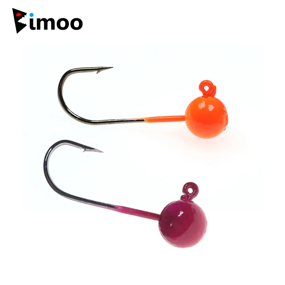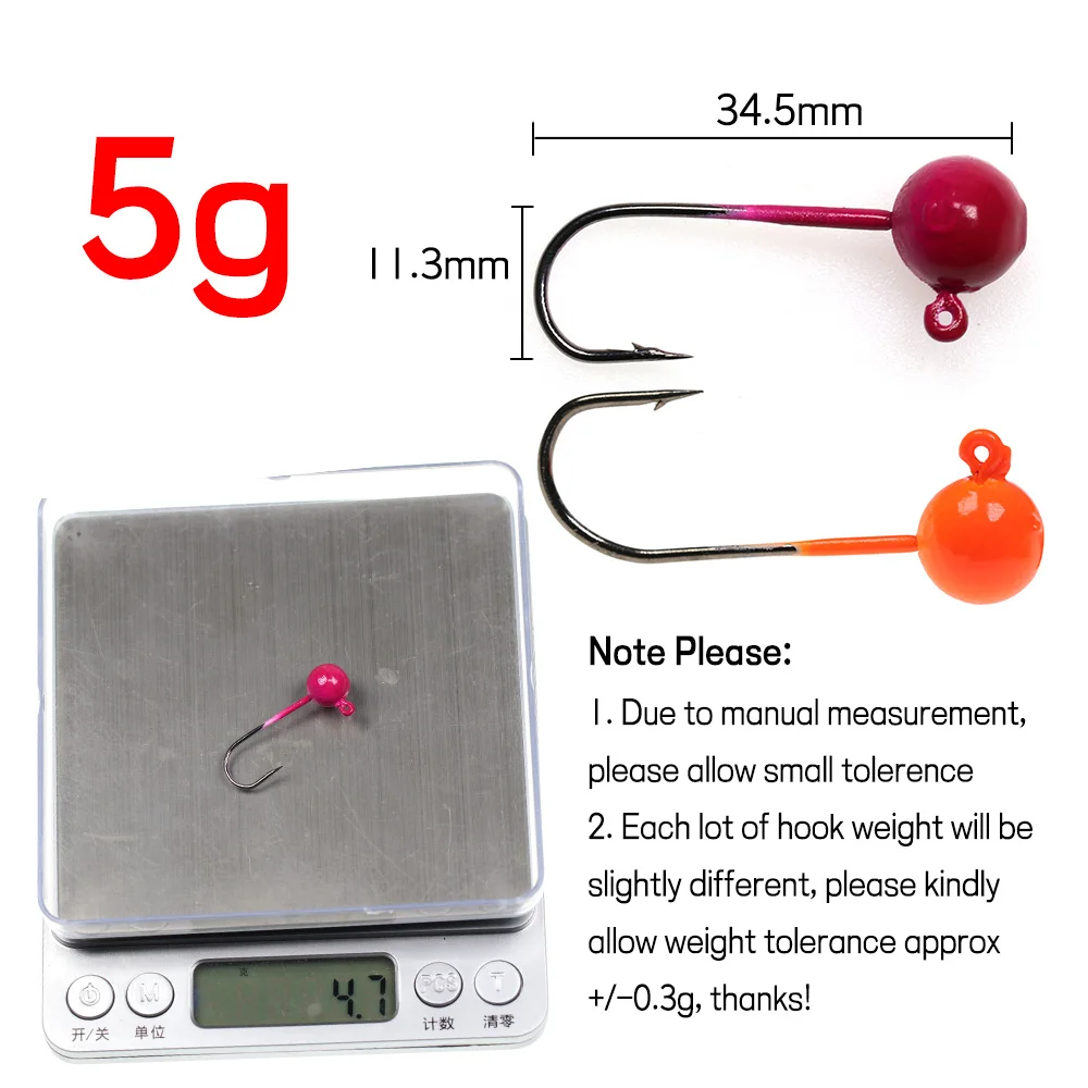Bimoo Pesca de invierno 5 piezas 3g 5g UV anaranjado Rosa cabeza anzuelo Pesca gusano suave cebo Jig gancho para Perch Walleye Bass
