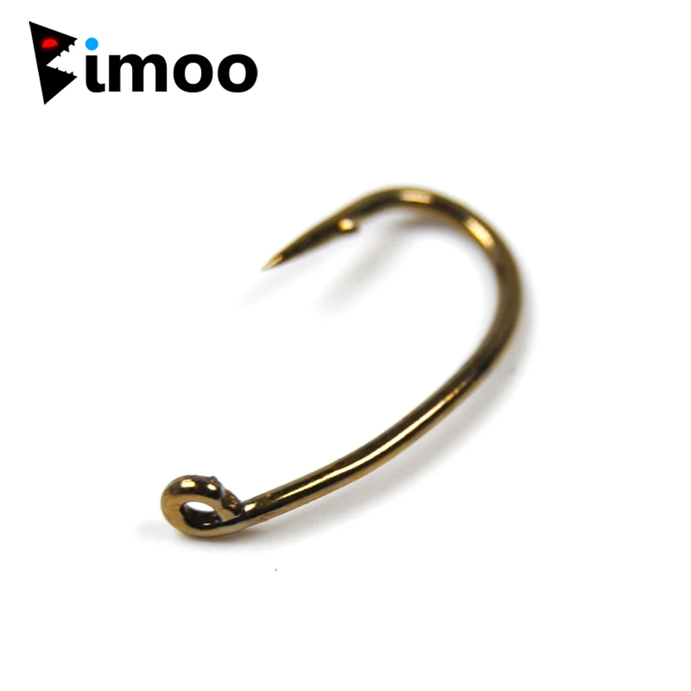 Gancho de atado de mosca Offset Bimoo Premium 25 piezas Caddis 2 anzuelos fuertes de Ninfa, anzuelo de pesca con mosca tamaño #10 #12 #14 #16 #18 bronceado