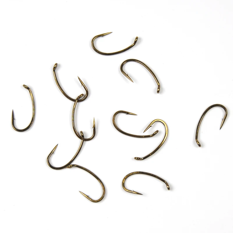 Premium 25 uds huevo Caddis Offset anzuelo para atar moscas 2X fuertes y afilados anzuelos de ninfa tamaño del anzuelo de pesca con mosca#10 12 14 16 18 Bronceado