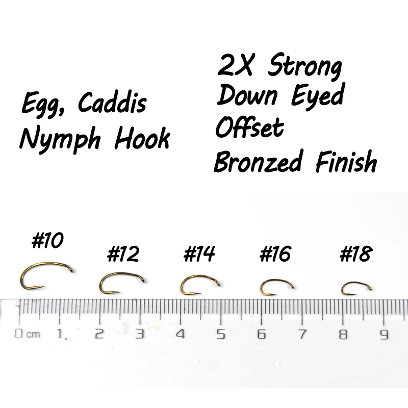 2X fuerte, de ojos abajo, desplazado, huevo y caddis, gancho de ninfa, acabado bronceado, púas, acero con alto contenido de carbono, punta afilada