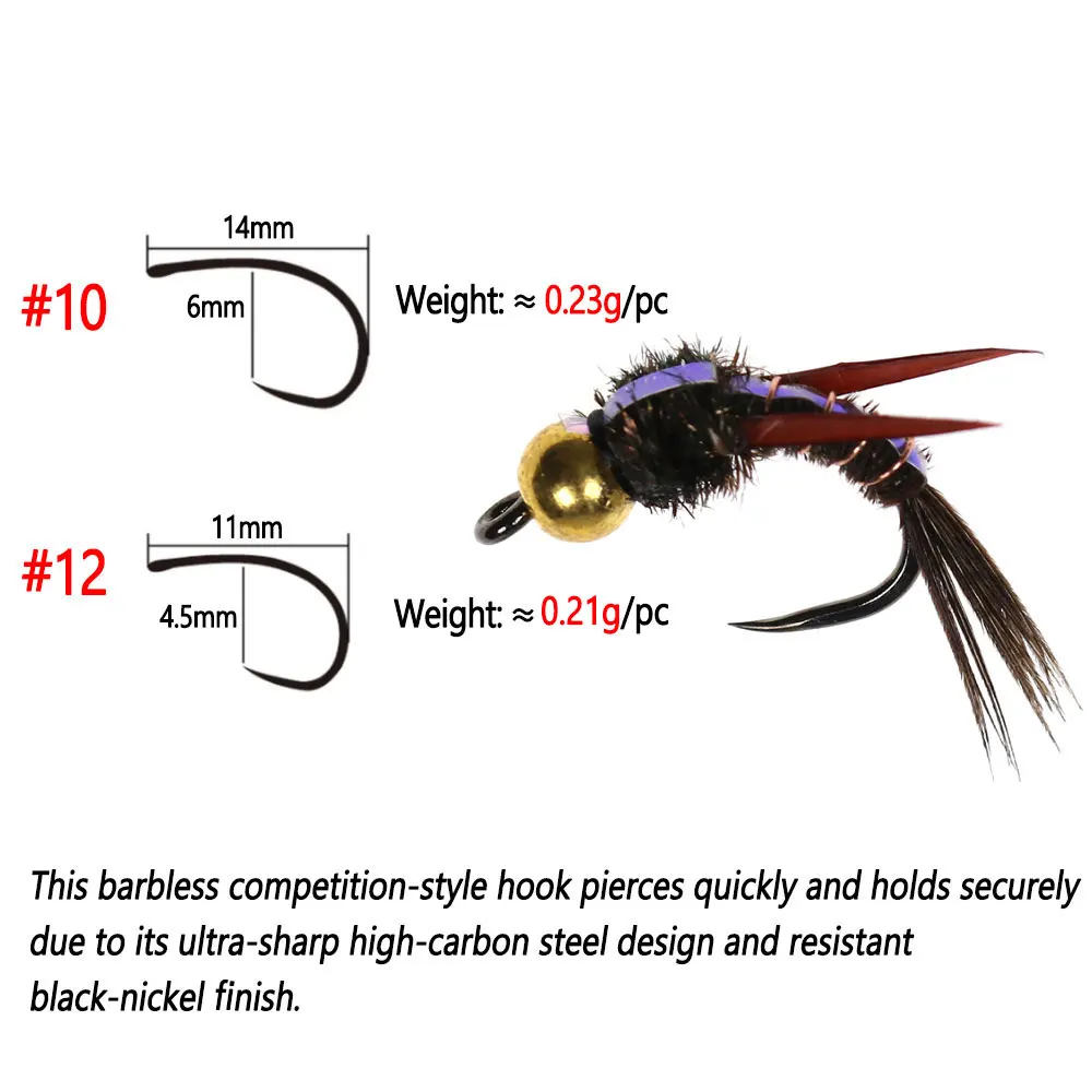 Peso de la mosca:#10≈0,23 g/unidad,#12≈0,21 g/unidad
