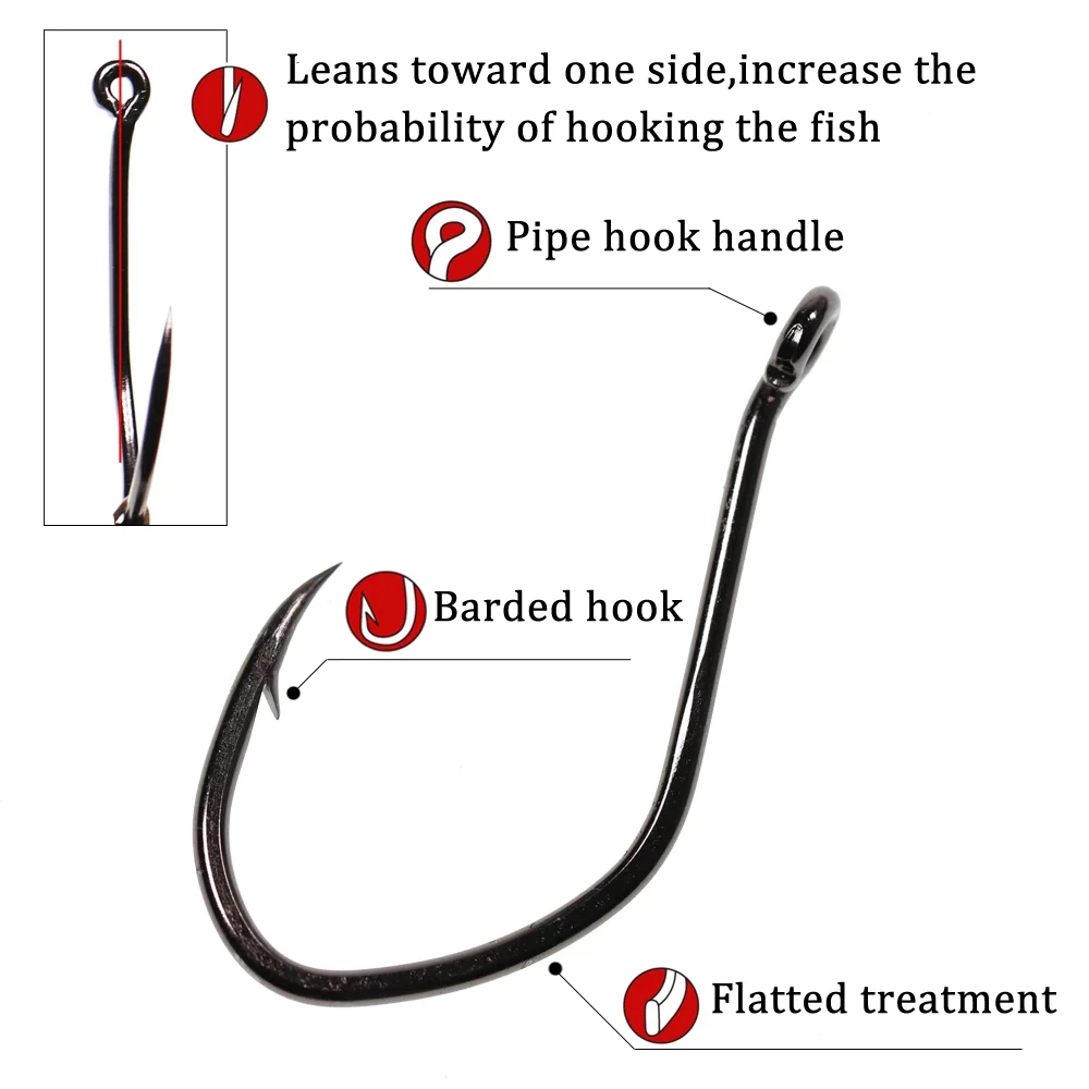 Bimoo, 50 Uds., anzuelo de bagre en forma de V de acero de alto carbono, anzuelos de pesca de agua salada con púas, níquel negro 8 6 1/0 2/0 3/0 4/0 6/0 8/0