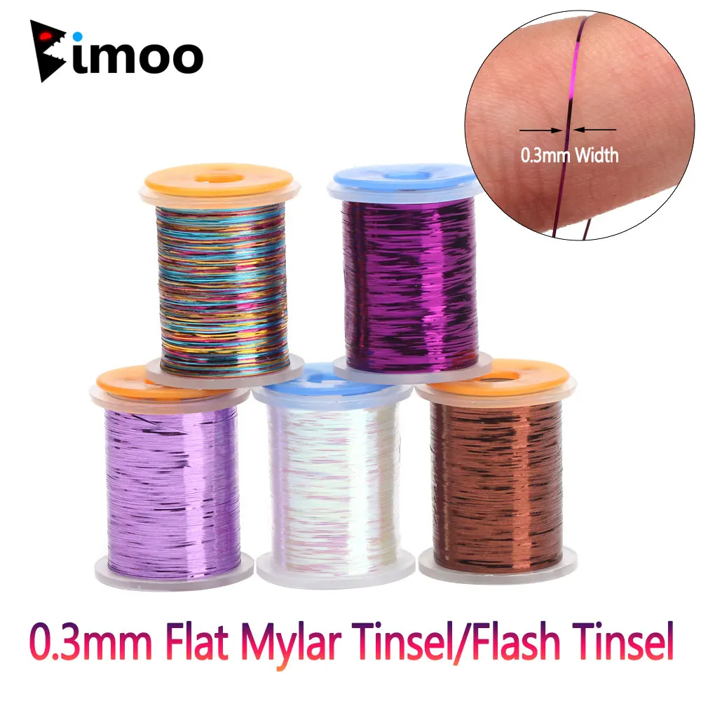 Bimoo 0,3mm atado de moscas plano Mylar oropel holográfico Flash oropel Material de atado de moscas seco húmedo Ninfa Streamer trucha Señuelos de Pesca