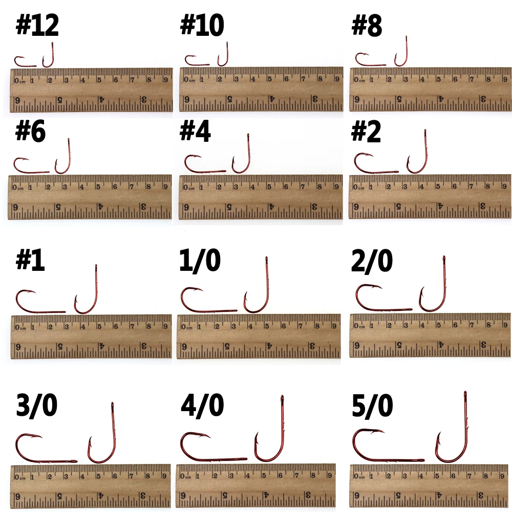 Bimoo Anzuelo de Púas para Pesca, Anzuelo Rojo Invertido, Tamaño 5/0, 4/0, 3/0, 2/0, 1/0, etc.