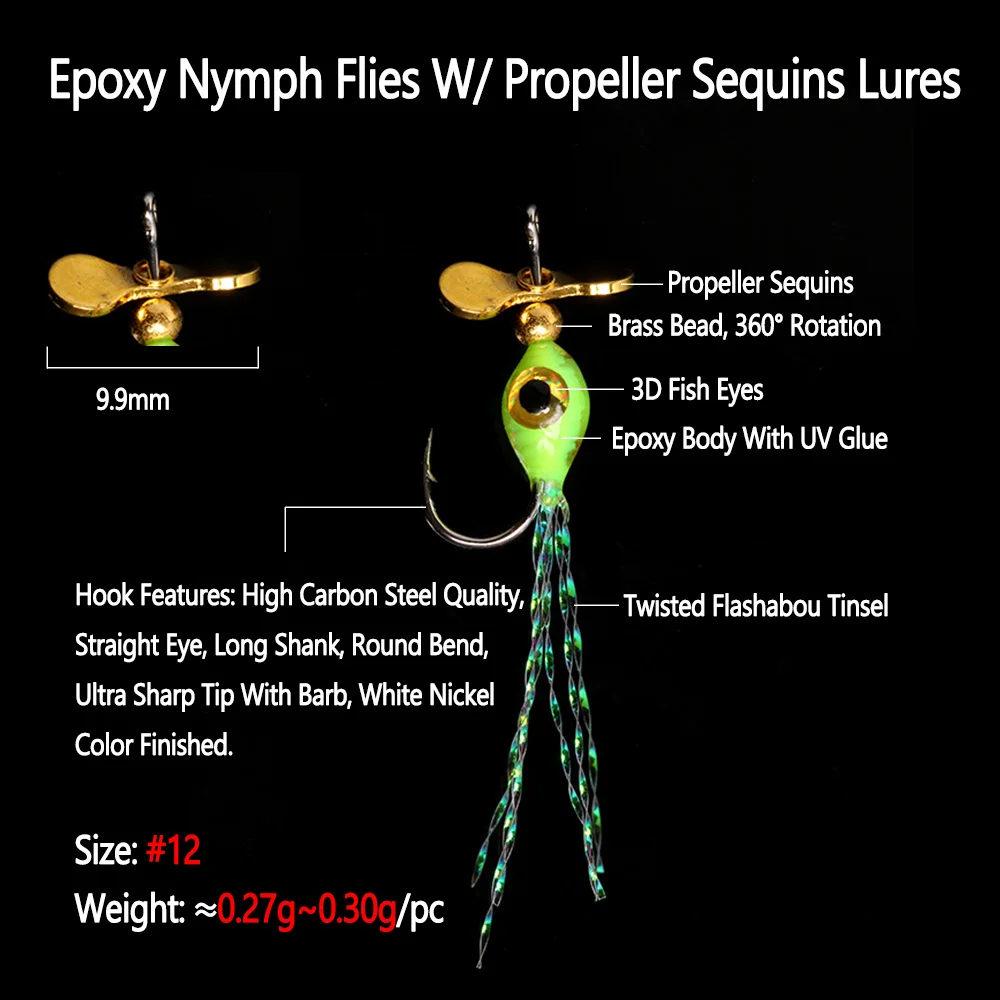 Ninfa de epoxi vuela con señuelos de lentejuelas de hélice
