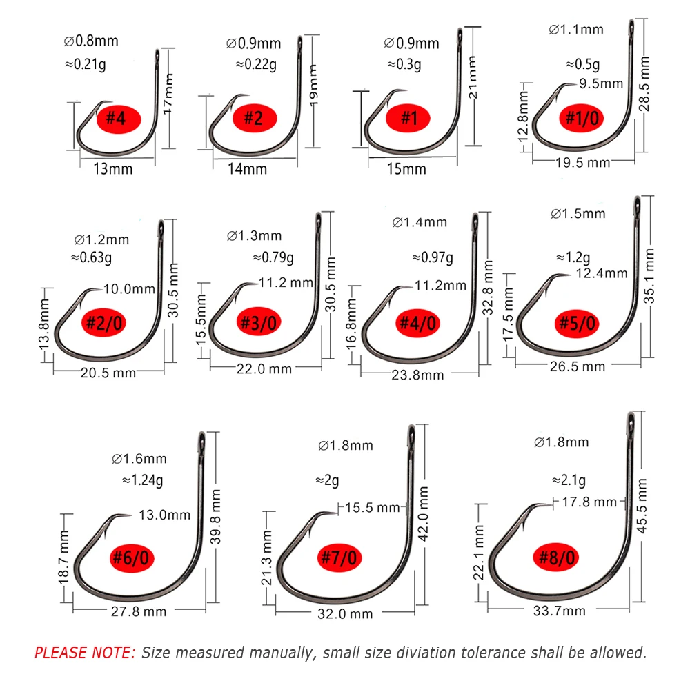 Bimoo 20 piezas negro rojo anzuelos acero de alto carbono agua salada deporte Offset círculo anzuelos de pesca aparejos 1/0 2/0 3/0 4/0 5/0
