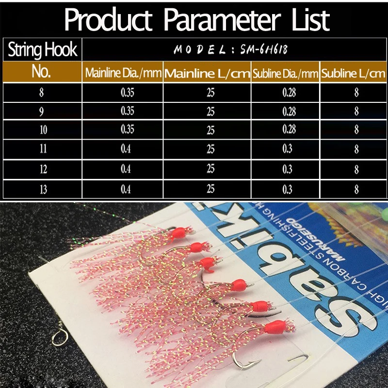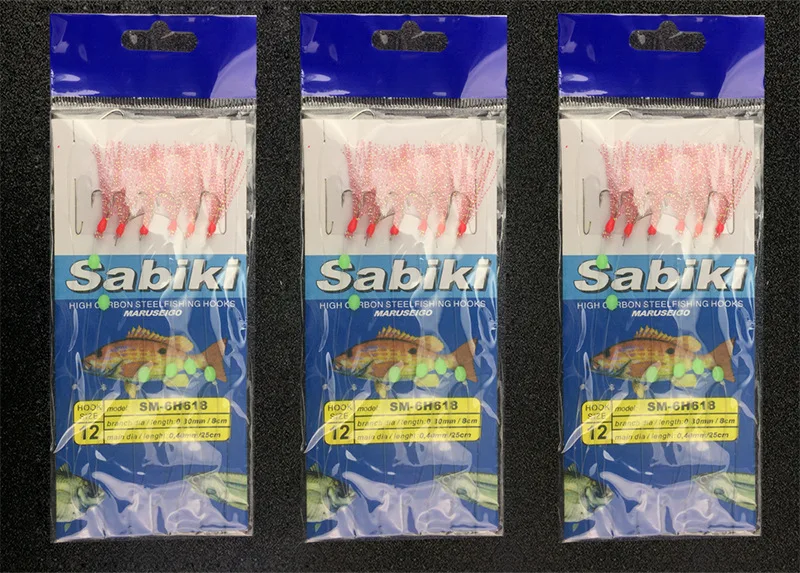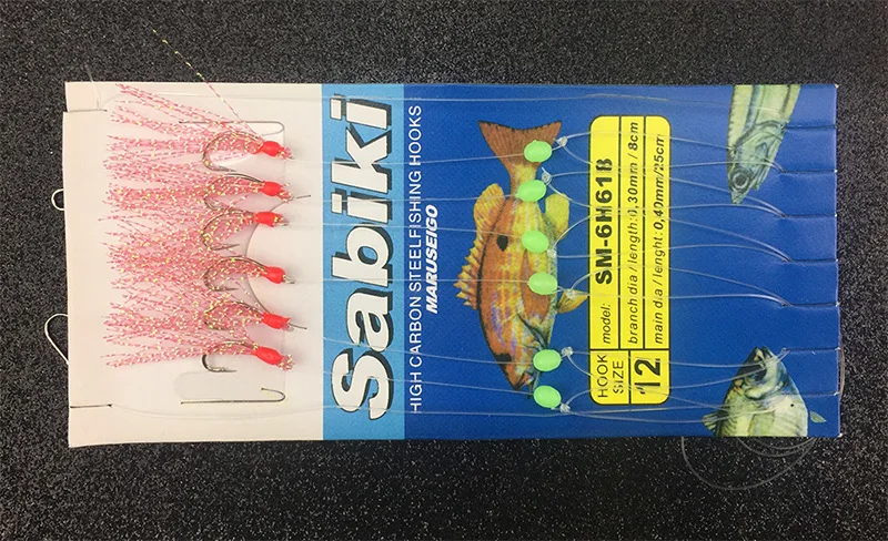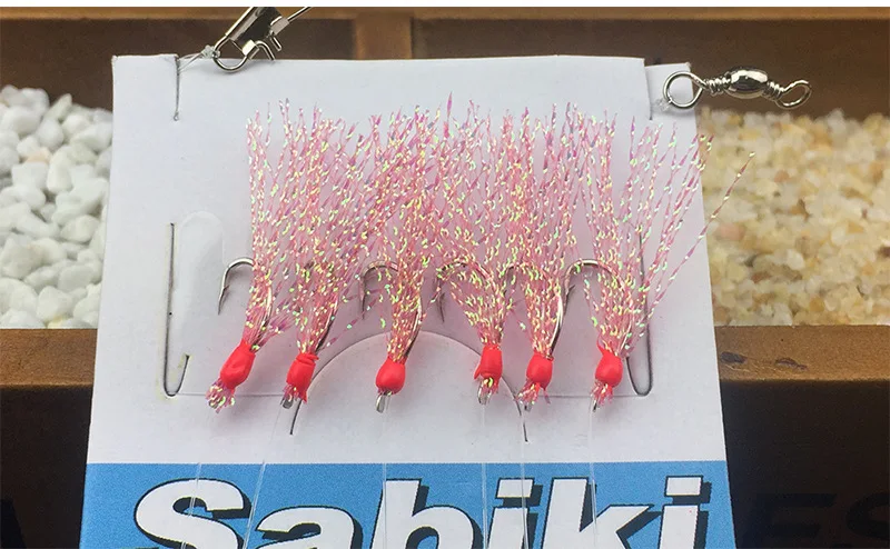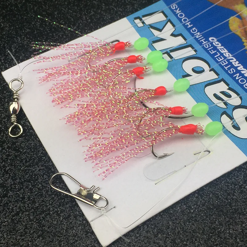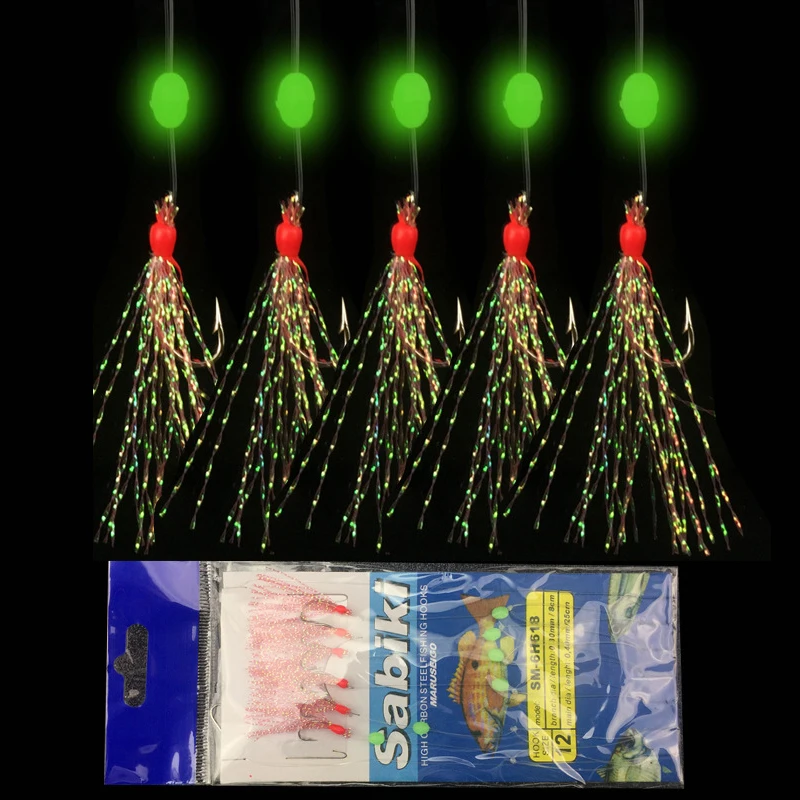 Bimoo 6 unids/set anzuelos de cuerda coloridos Sabiki Rig con 6 anzuelos para Señuelos de Pesca luminosos de mar combinación de anzuelos de pesca #7-#15