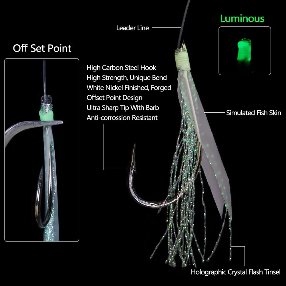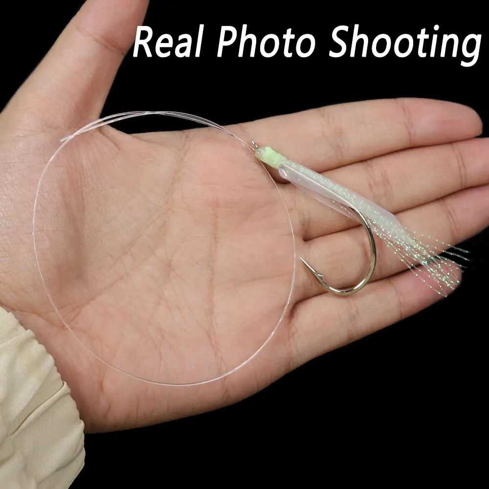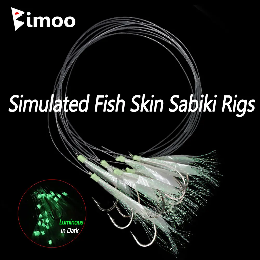 Bimoo-Anzuelos de cuerda Sabiki para pesca en agua salada, señuelo de pesca en aguas profundas, aparejos luminosos de piel de pez simulada de 50 piezas