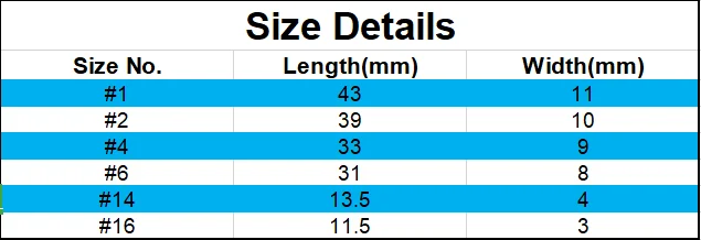 #14, #16 (tamaño pequeño, ojo doblado hacia abajo)