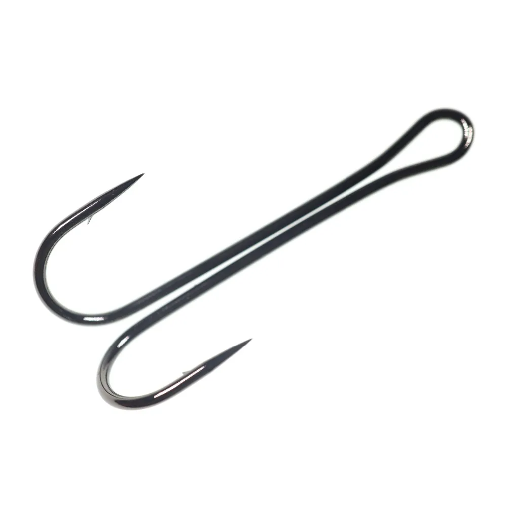 Bimoo anzuelo doble de agua salada clásico, 10 Uds., anzuelo para atar moscas de salmón, anzuelos de pesca dobles afilados grandes y fuertes de níquel negro #1 #2 #4 #6 #14 #16
