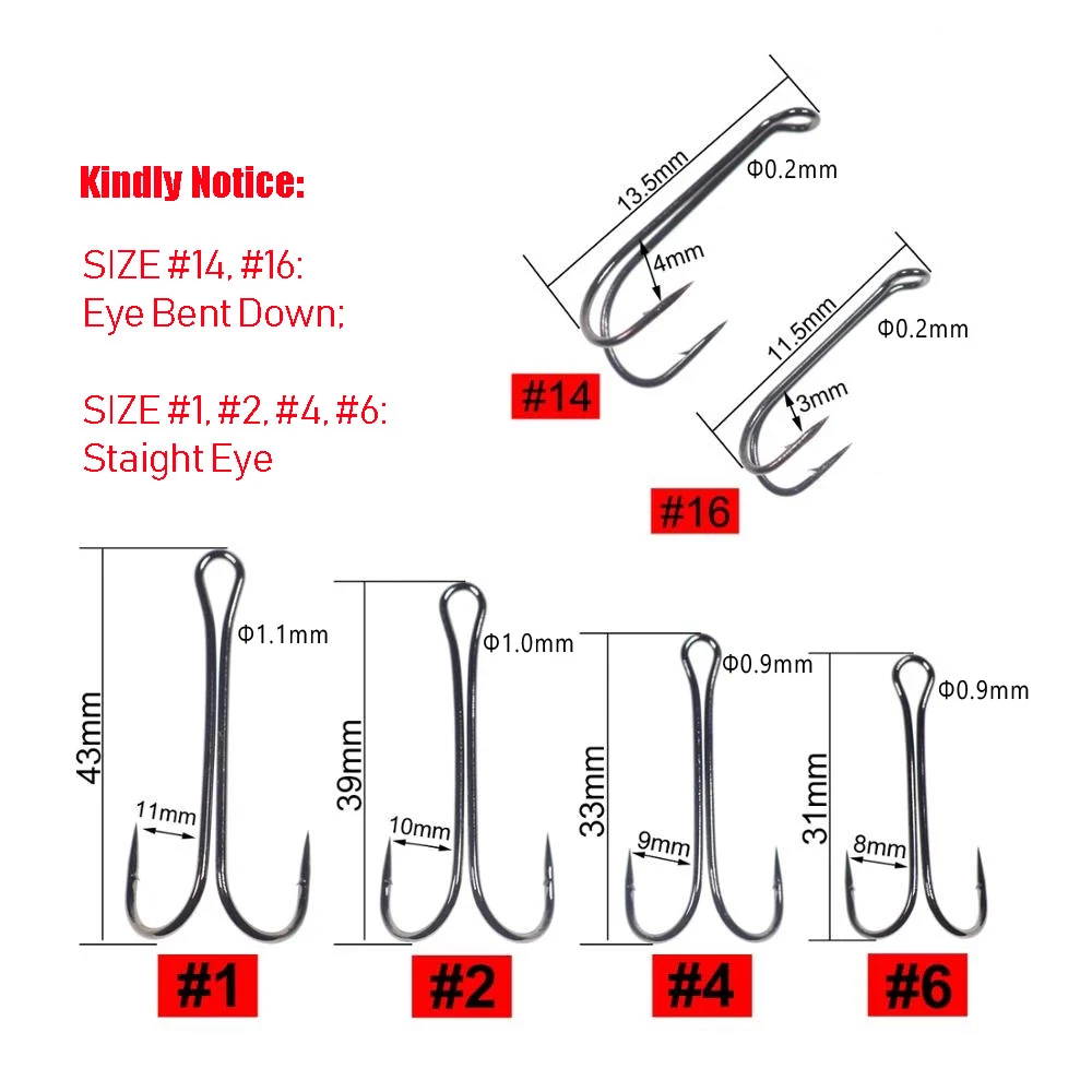Los anzuelos dobles cuentan con un diseño de vástago abierto que es perfecto para luchar contra una variedad de peces, con resistencia extrema y la cantidad justa de flexibilidad.