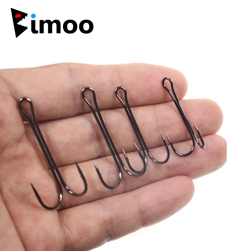 Bimoo anzuelo doble de agua salada clásico, 10 Uds., anzuelo para atar moscas de salmón, anzuelos de pesca dobles afilados grandes y fuertes de níquel negro #1 #2 #4 #6 #14 #16