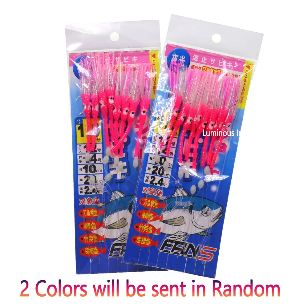 Bimoo 8 anzuelos/paquete Octopus Sabiki Rigs Flashabou Tinsel String Hooks Señuelos Saury Calamar Caballa Aparejos de pesca de agua salada Pesca