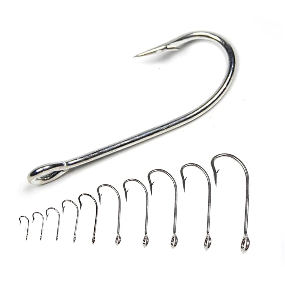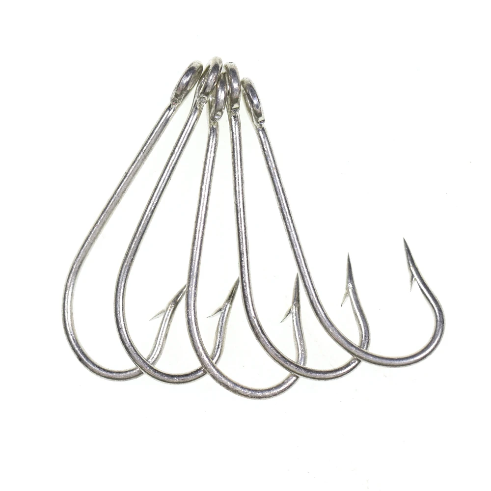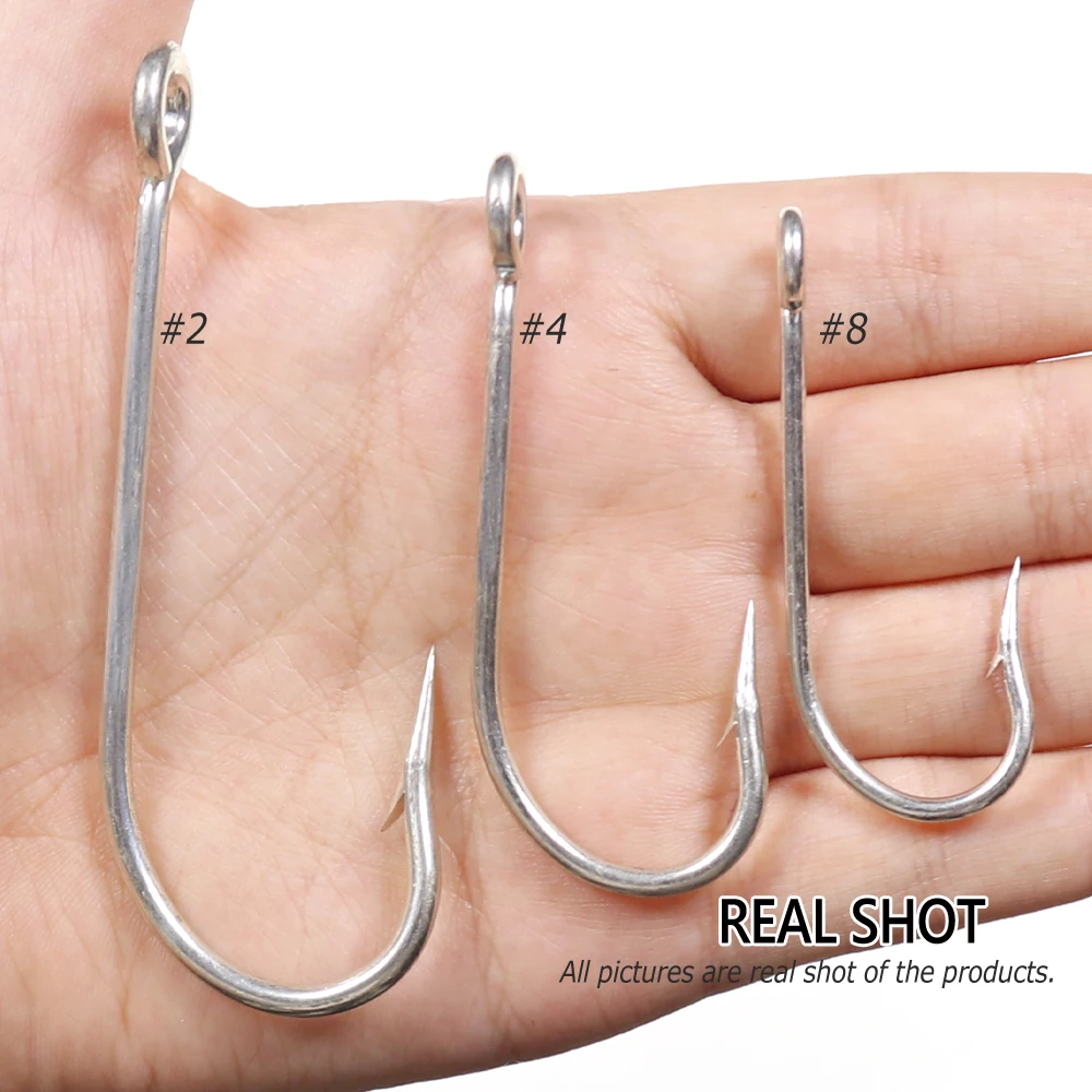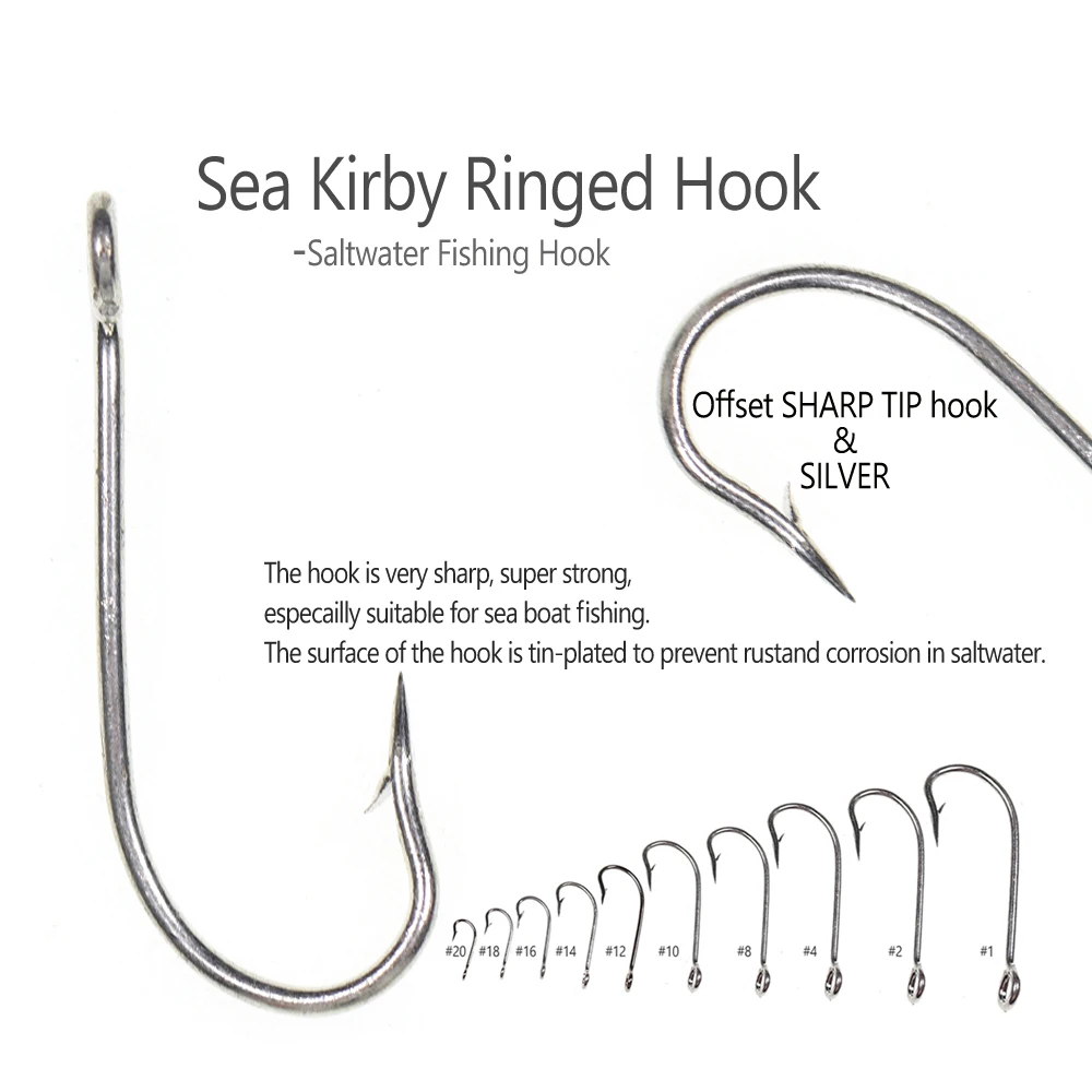 Bimoo 20 piezas anzuelo anillado de Kirby de mar de acero de alto carbono Color plata anzuelos de pesca de agua salada con púas afiladas 1 2 6 8 10 12 14 16 18 20