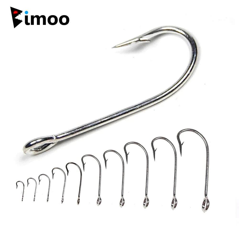 Bimoo 20 piezas anzuelo anillado de Kirby de mar de acero de alto carbono Color plata anzuelos de pesca de agua salada con púas afiladas 1 2 6 8 10 12 14 16 18 20