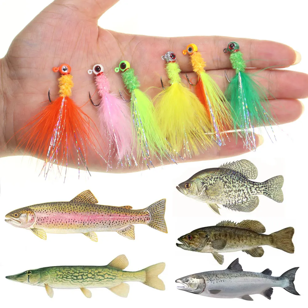 【DISEÑO ATRACTIVO】 Marabou Jigs están hechos de ganchos afilados de alta calidad, cabeza de plantilla con ojos punteados, plumas de pelo de colores brillantes, lo hacen realista y atractivo.