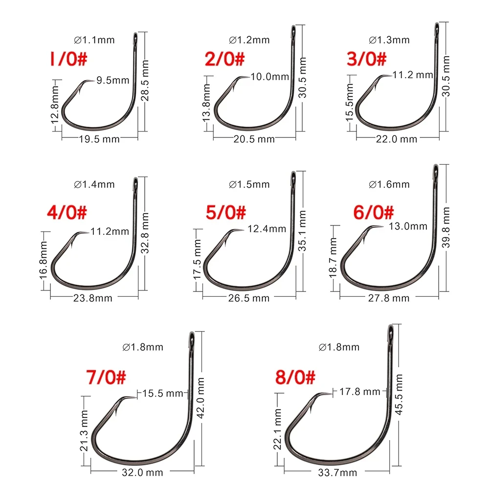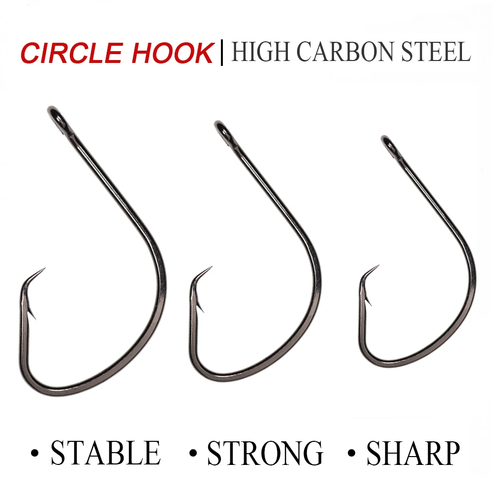 Bimoo 20 piezas anzuelo de pesca circular de acero con alto contenido de carbono 7381 anzuelo de plataforma Sabiki de níquel negro 1/0 2/0 3/0 4/0 6/0 7/0 8/0