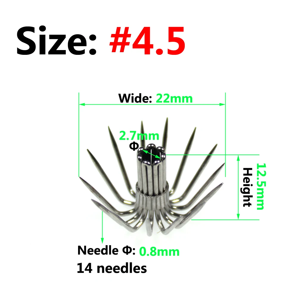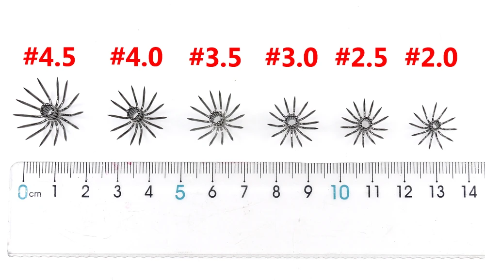 Tamaño: #2, #2,5, #3, #3,5, #4, #4,5 Aplicación: para Plantilla de camarones de madera DIY, fabricación de Señuelos de Pesca de plantilla de calamar.