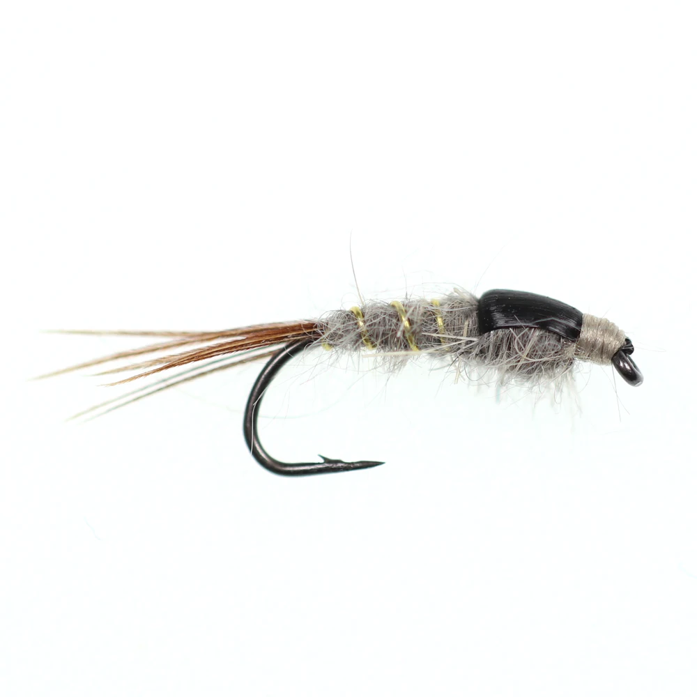 Bimoo 10 piezas 12 # oreja de liebre gris cola marrón Nymph mosca trucha con anzuelos mosca cebos de pesca