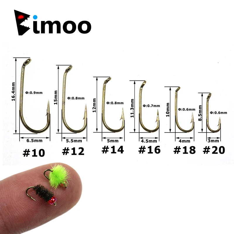 Bimoo 500 piezas tamaño 10 12 14 16 18 20 Ninfa estándar y anzuelo de mosca húmeda bronce Ninfa fuerte y anzuelos de pesca con mosca húmeda