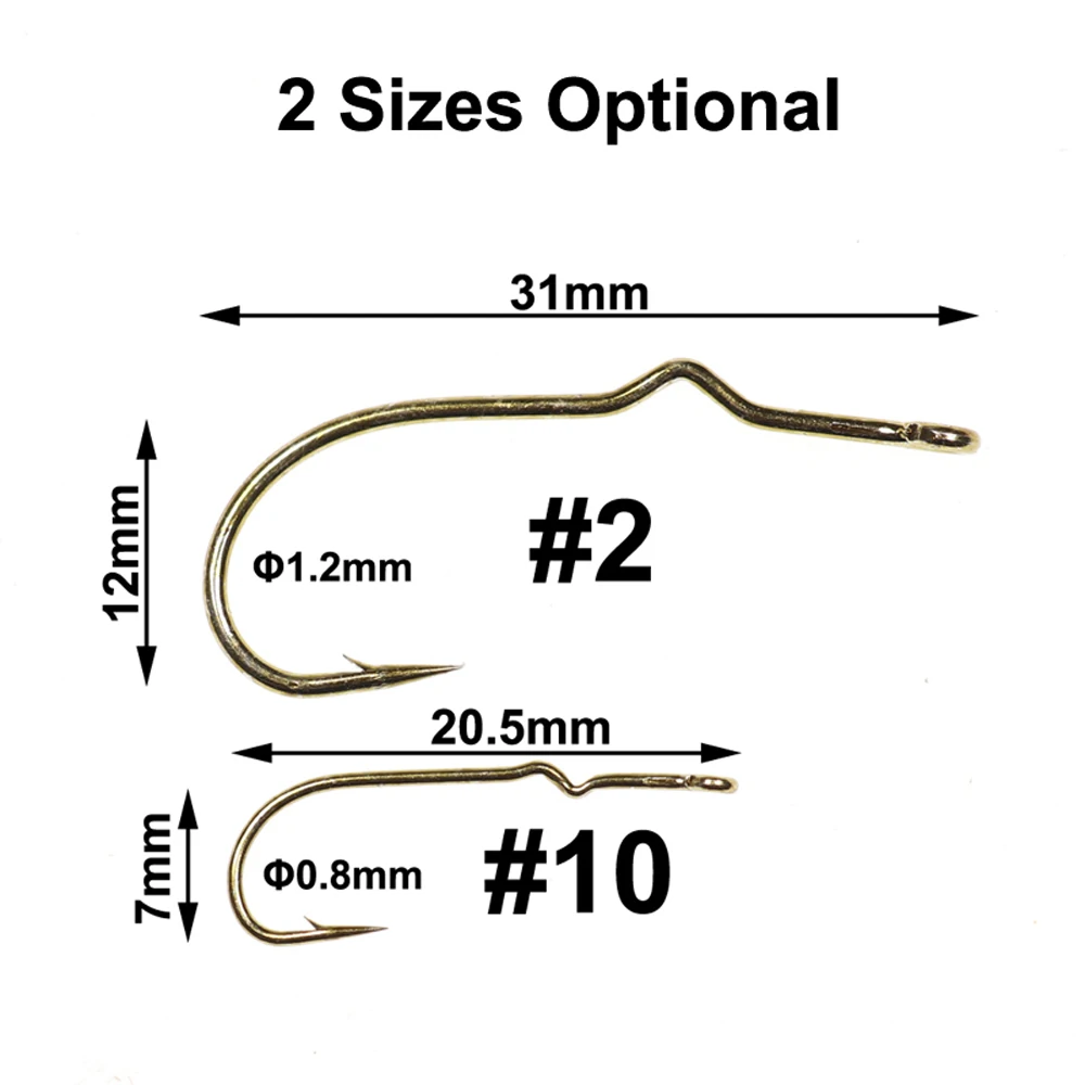 Bimoo-Anzuelos de púas para atado de moscas 50, anzuelos de espiga y mango largo, #2, #10, 50, #2