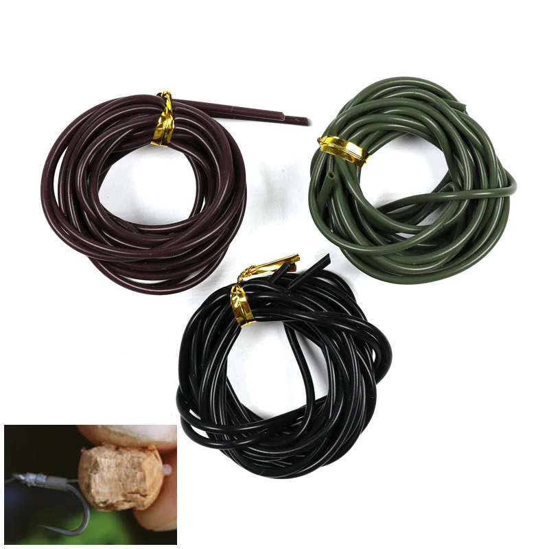 Bimoo 2 m/pack aparejo de flotador de pesca de carpa tubo de silicona aparejo de pelo gancho de silicona camuflaje verde 2mm aparejos de pesca manga de goma