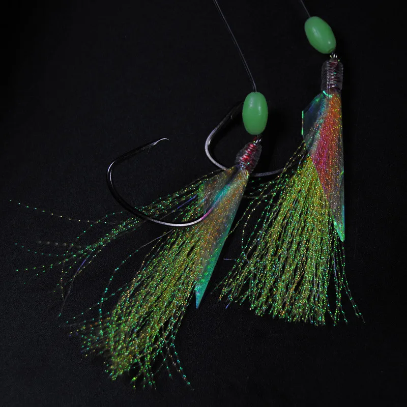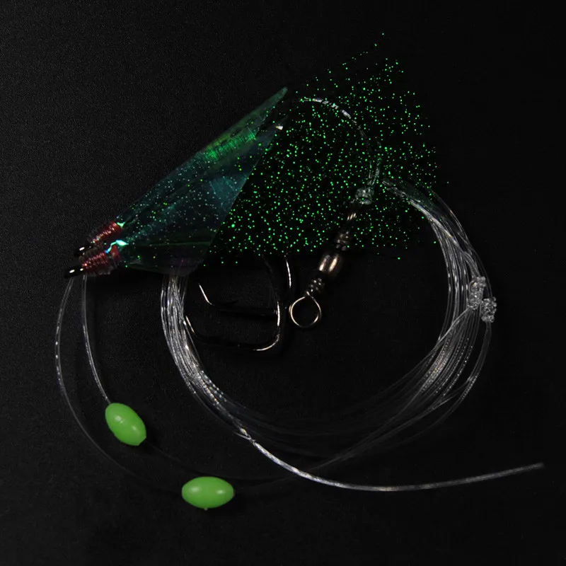 Bimoo 10 bolsas 5/0 aparejos Sabiki de piel de pez con anzuelos aparejos de cebo intermitente de pesca de mar con arenque giratorio de barril