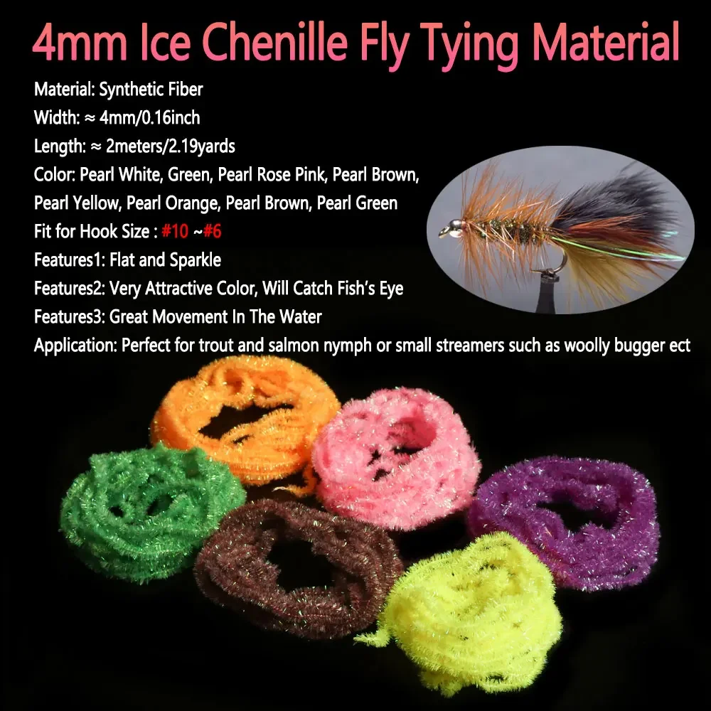 Atado de moscas Bimoo, Material de chenilla de hielo de 4mm, Streamer de ninfas, Bugger de lana, Material para envolver el cuerpo, trucha, salmón, mosca