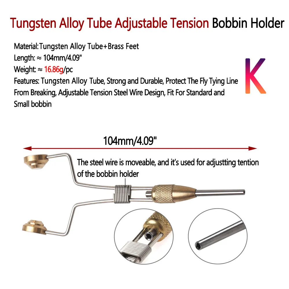 Características: tubo de aleación de tungsteno, resistente y duradero, protege la línea de atado de moscas contra roturas, diseño de alambre de acero de tensión ajustable, apto para bobinas estándar y pequeñas