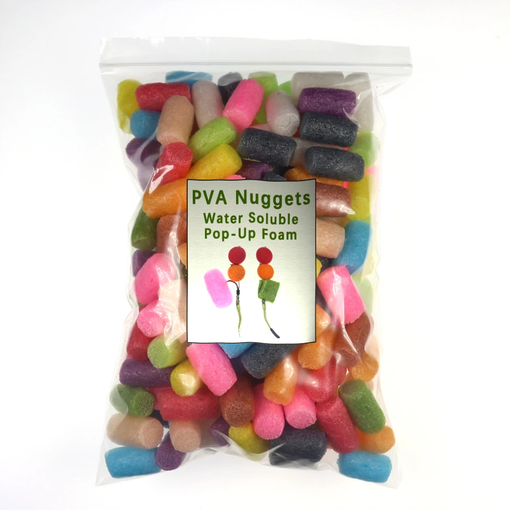 PVA nuggets are "biodegradable" and completely water-soluble, making them both nature and fish-friendly. Simply attach the PVA nugget to your hook before casting and it will keep both bait & hook suspended above the lake bed for several seconds. The foam will release the hook and leave the bottom line in perfect condition. Allowing your rig to gently sink to the bottom, neatly presented over weed, leaf and silt. The foam will float to the surface and gives you a nice target for feeding.