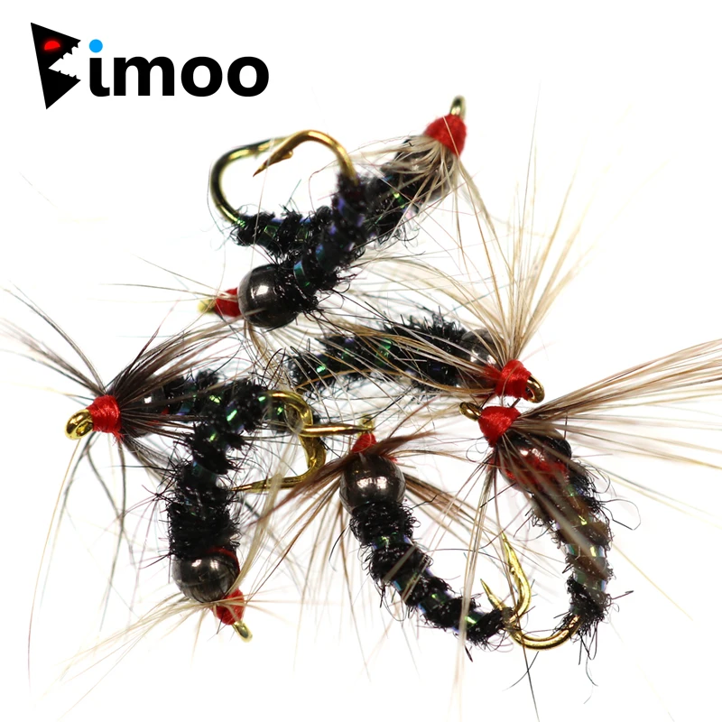 Bimoo 6 uds #8 #10 #12 trucha marrón arcoíris Greyling Char Caddis cabeza de cuenta de tungsteno metálico Ninfa pesca Premium moscas negro