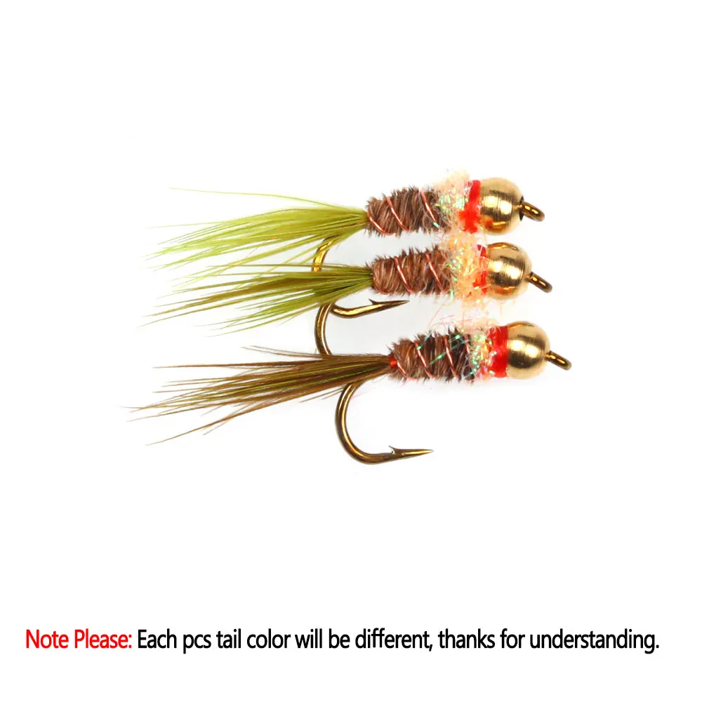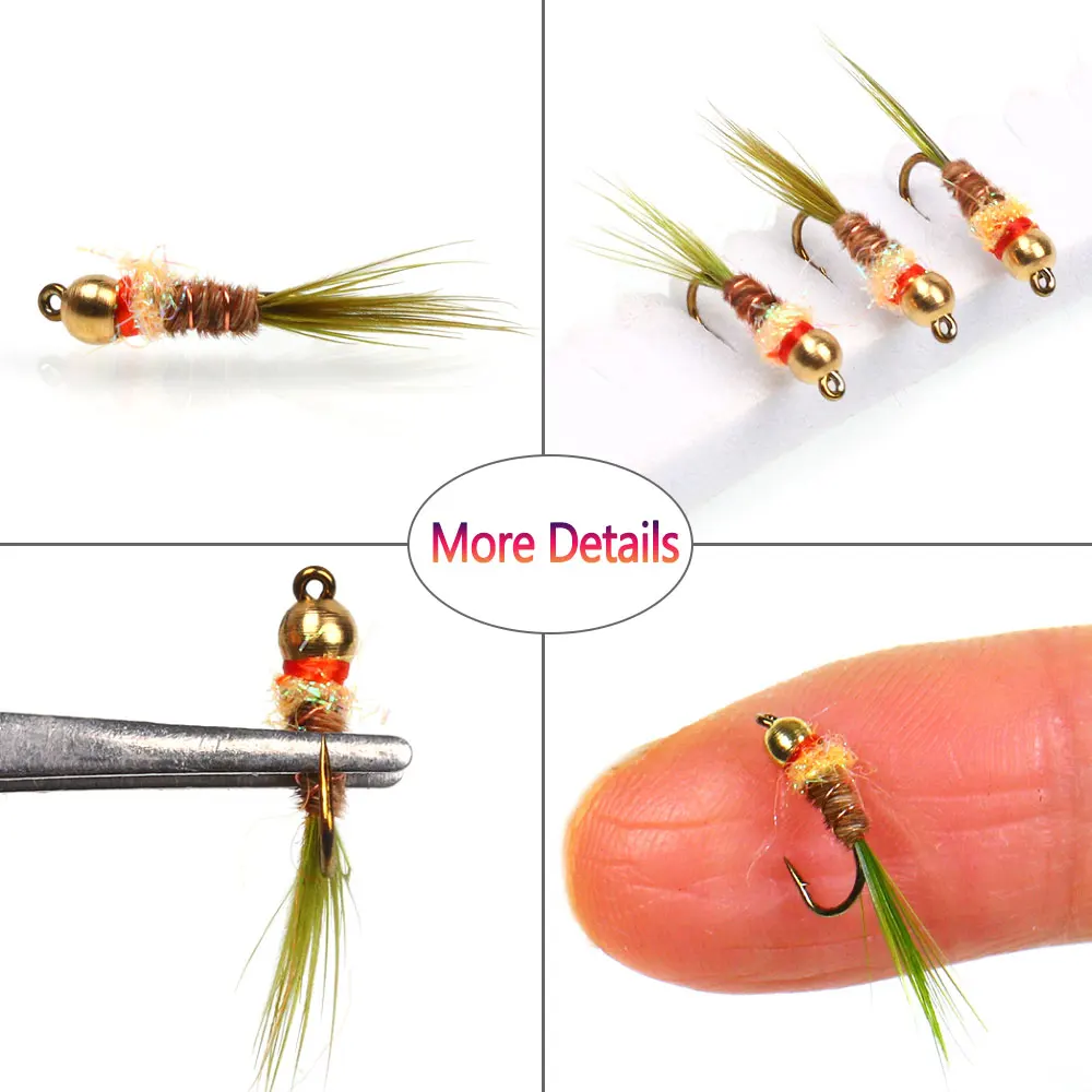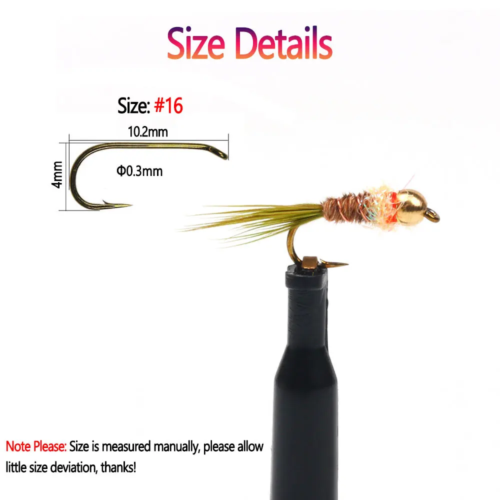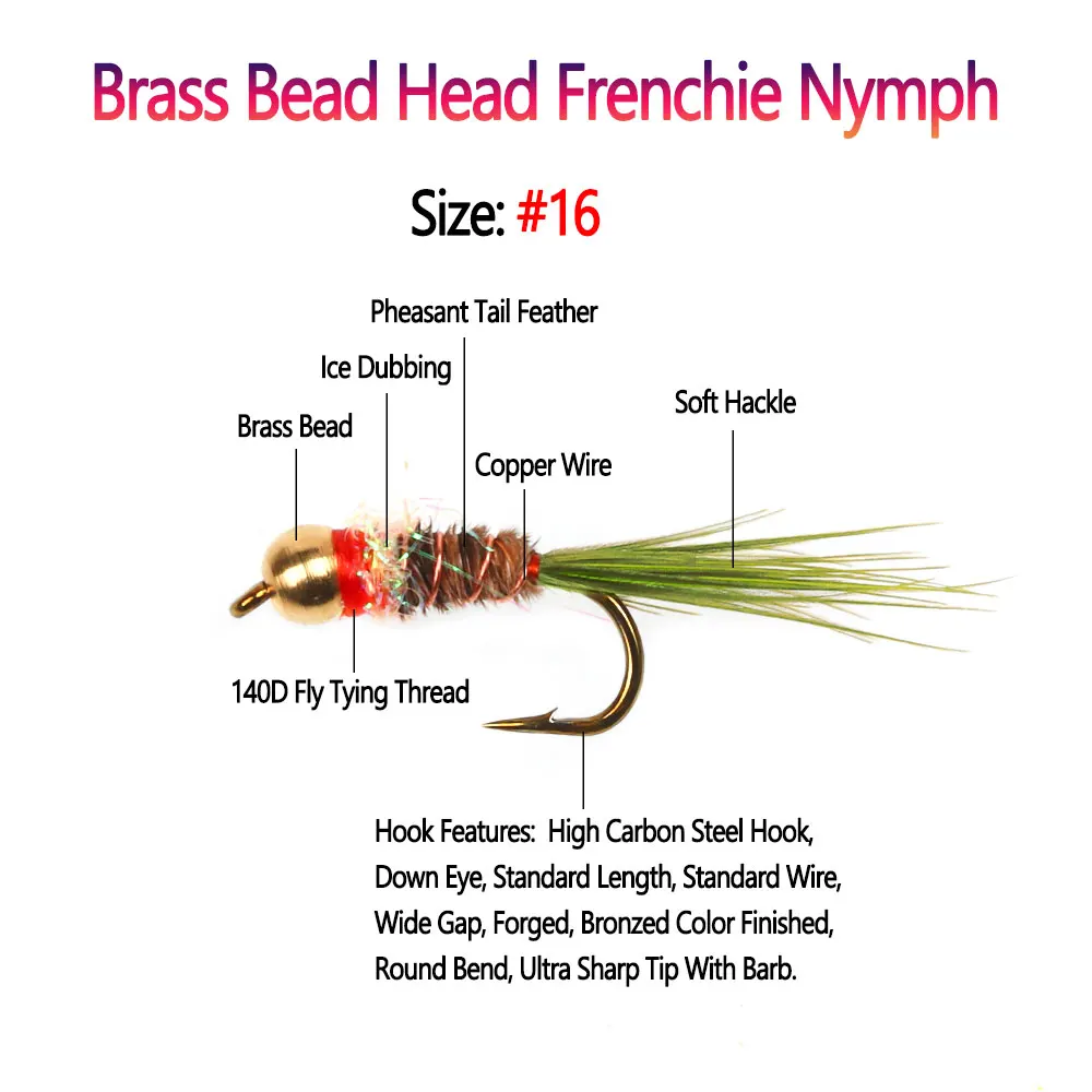 Bimoo-Cabeza de cuentas de latón para pesca de truchas, cebos de señuelos de plumas de cola de faisán, moscas mojadas con púas, ninfas europeas, ninfas, 6, #16, #16