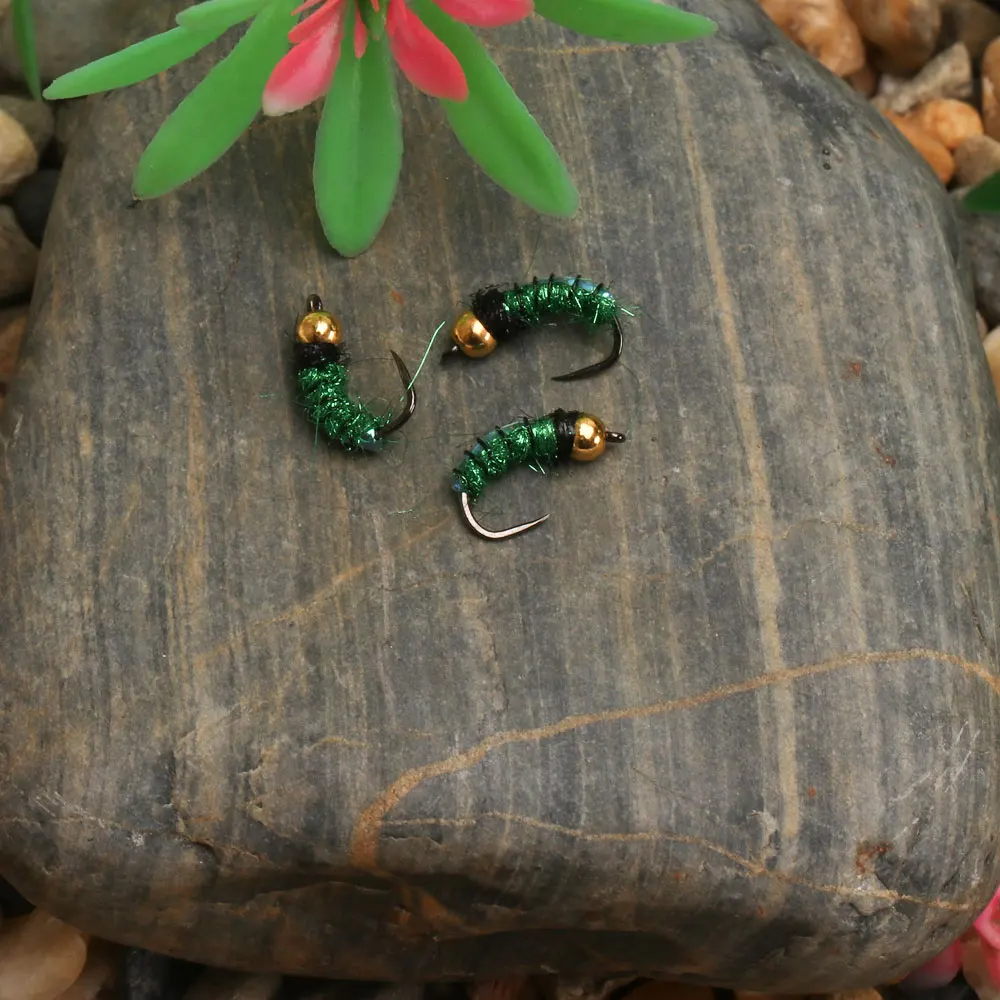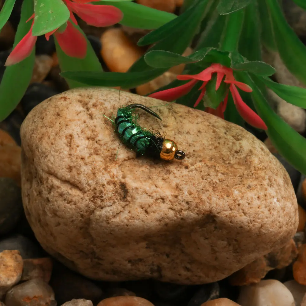 Bimoo Señuelos de Pesca con Cabeza de Cuentas de Latón sin Púas, Ninfa Checa, Flash Back, Caddis, Ninfa, Pupa, Mosca Húmeda para Trucha
