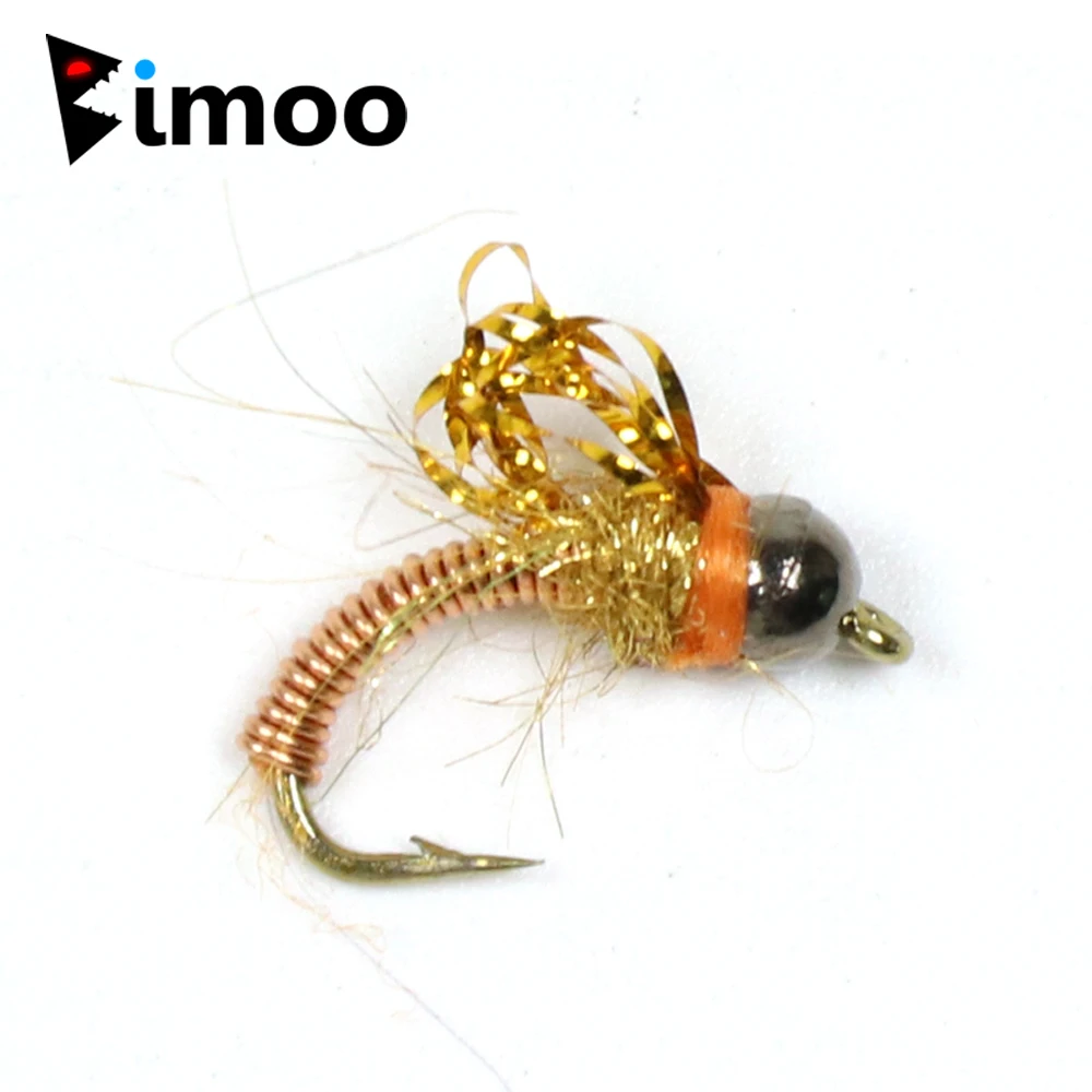 Bimoo 6 #14 cabeza de cuentas de tungsteno alambre de cobre Baetis Nymph Fly trucha pesca moscas Caped Avenger
