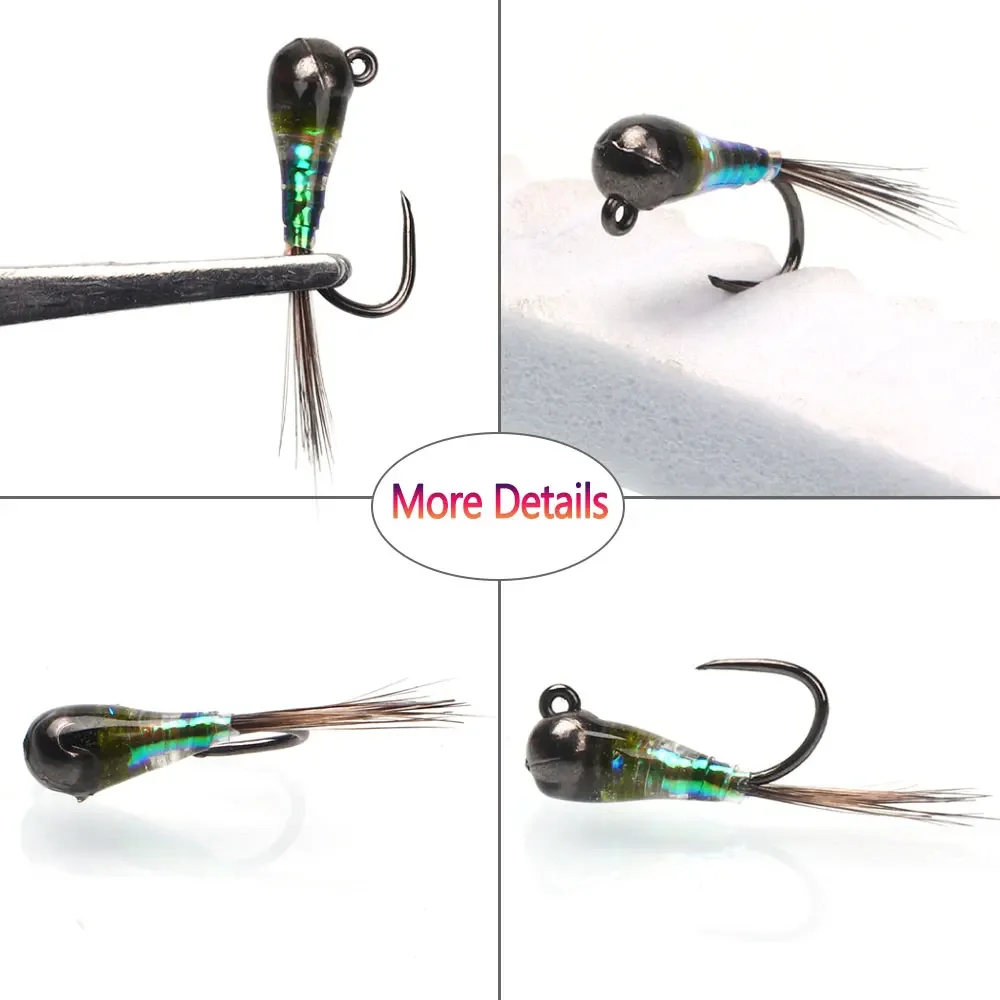 Bimoo-Señuelos de pesca de trucha, cabeza de cuentas de tungsteno 6, n. ° 18, ninfa, Mosca, cola de faisán epoxi, fregadero rápido, mojado, Euro, ninfa, Mosca, trucha, Señuelos de Pesca