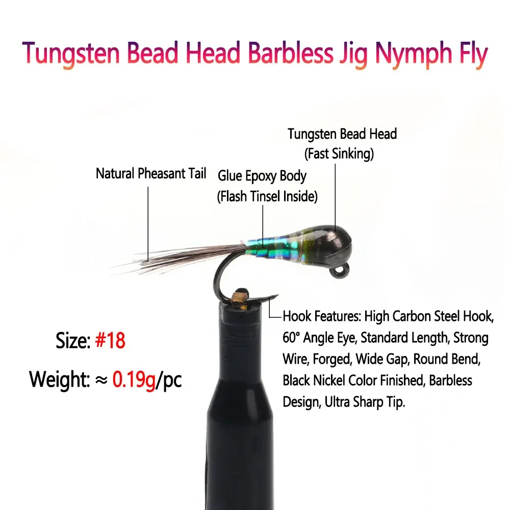 Cabeza de cuentas de tungsteno Barbless Jig Nymph Fly