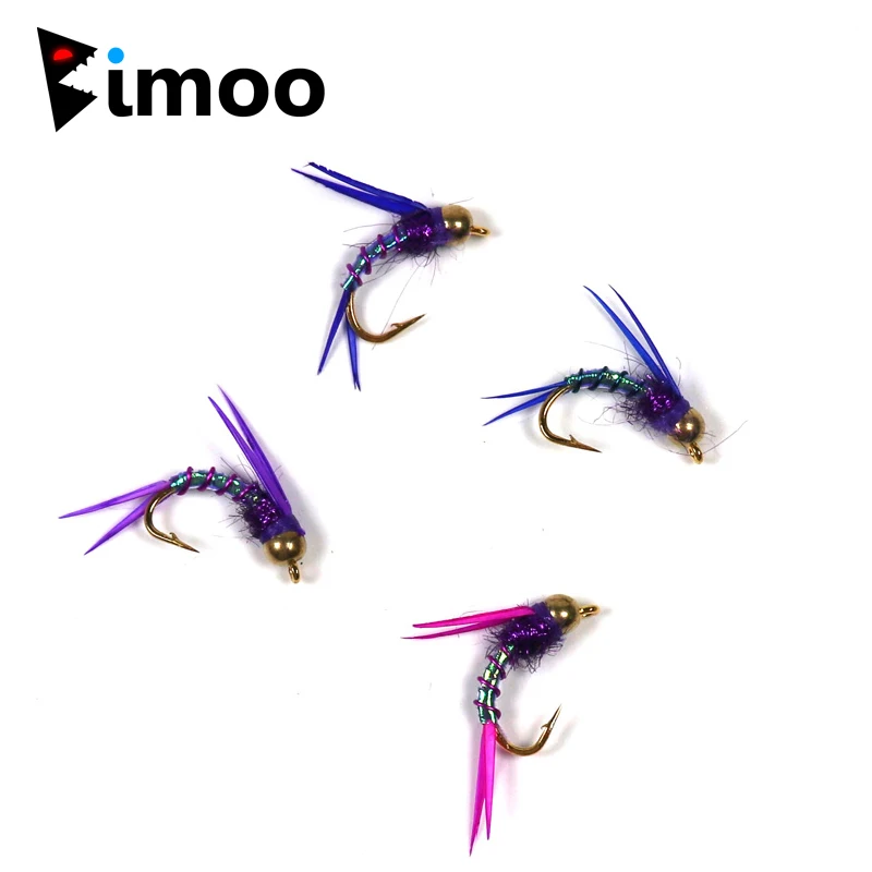 Moscas de pesca de trucha, cabeza de cuentas de latón con mosca de ninfa de Príncipe morado loco de ninfa de Príncipe #12
