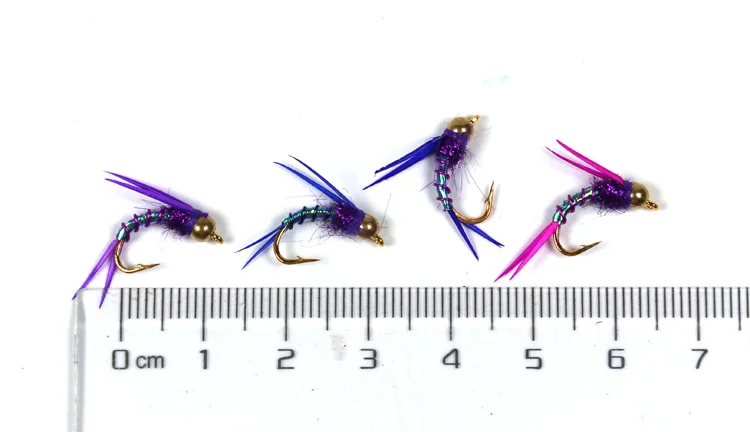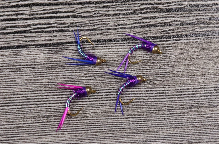 Color: variaciones con respecto a las ninfas tradicionales, color muy brillante. Extremadamente eficaz para la trucha arcoíris y la trucha marrón en muchos ríos.