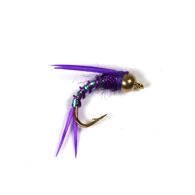 Bimoo-Cabeza de cuentas de latón para pesca de truchas, 6, #12, Psycho Prince Nymph, Ninfa, Crazy Purple